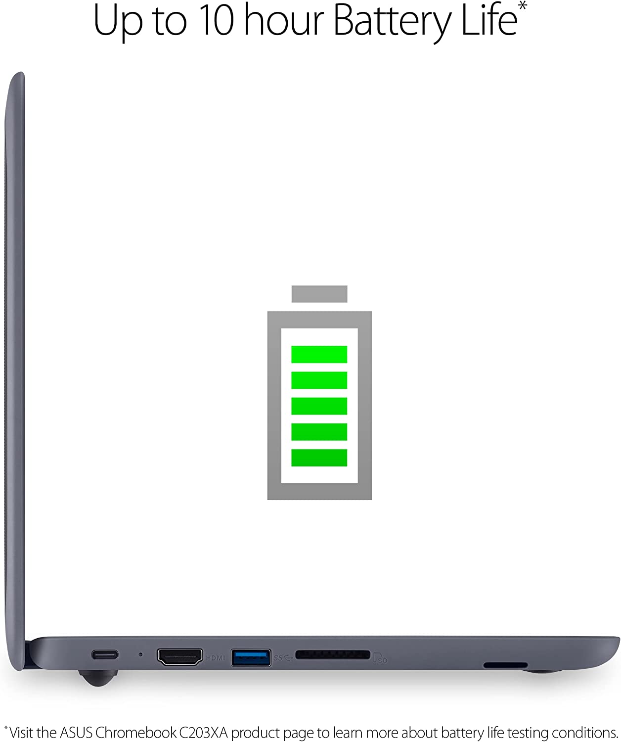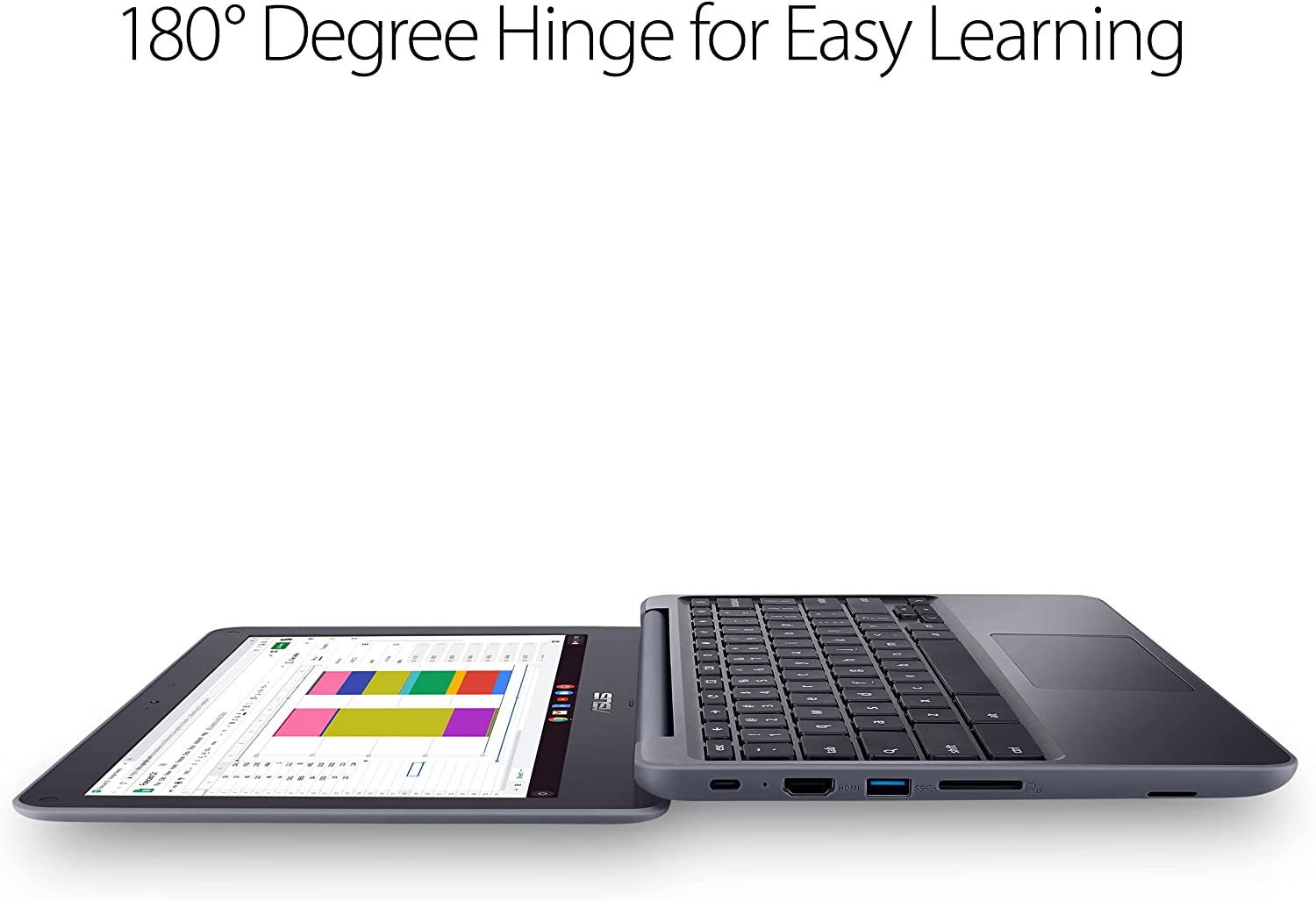 ASUS Chromebook C203XA Rugged & Spill Resistant Laptop, 11.6" HD, 180 Degree, MediaTek Quad-Core Processor, 4GB RAM, 32GB eMMC, MIL-STD 810G Durability, Dark Grey, Education, Chrome OS, C203XA-YS02-GR