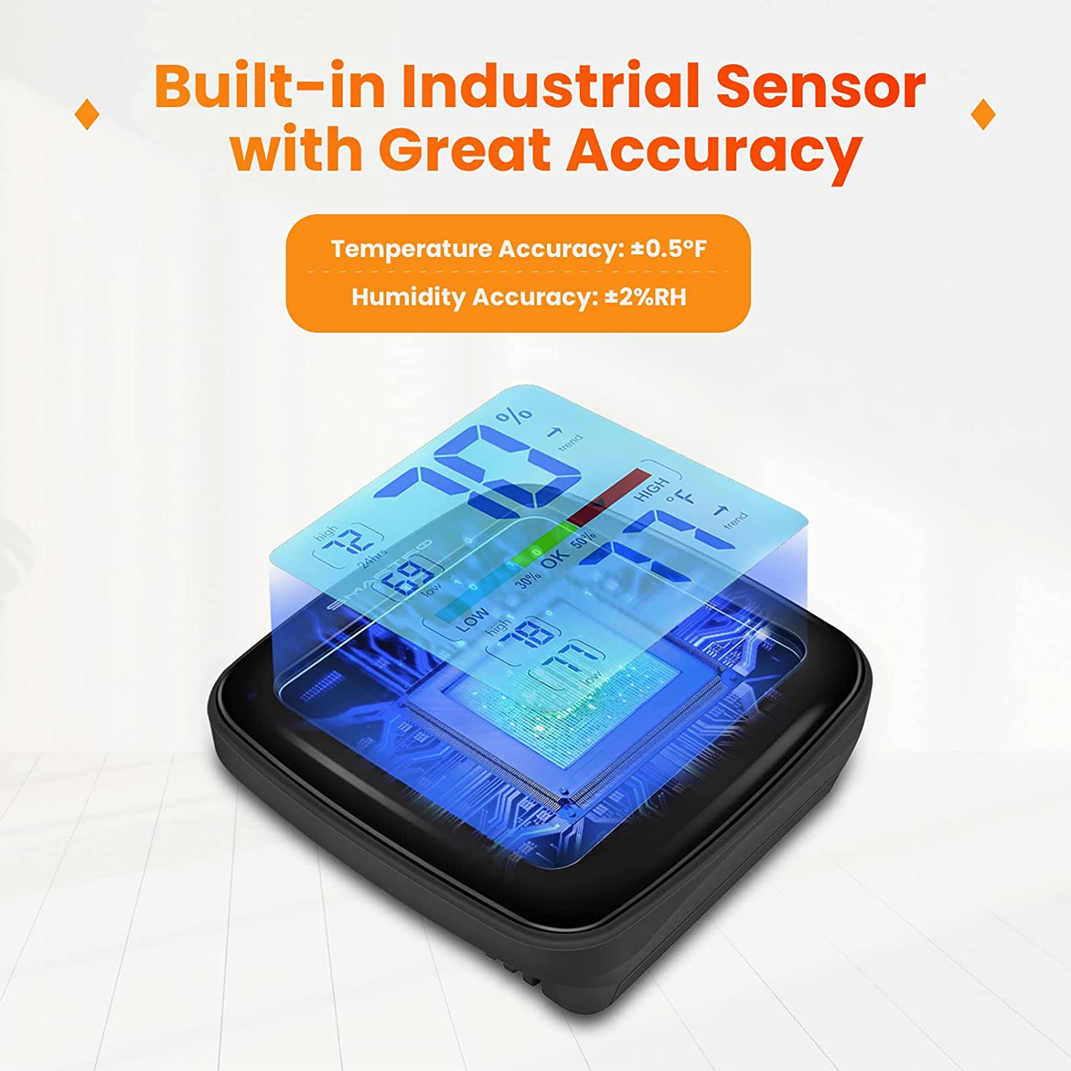 ✨【The Best Industrial Grade Accuracy】Humidity gauge with built-in Swiss sensors, it detects subtle humidity and temperature changes and updates readings in each 10 seconds. Temperature tolerance is within ±0.5℉(-4 to 158℉) and humidity is ±2%RH (1 to 99% RH). The digital hygrometer is pre-calibrated for accurate temperature and humidity measurement.