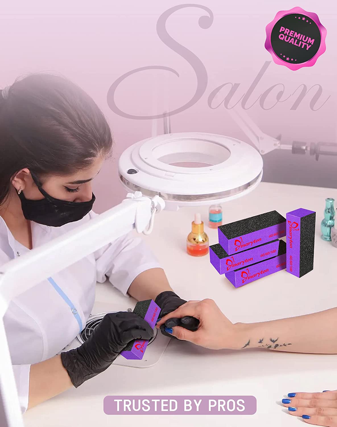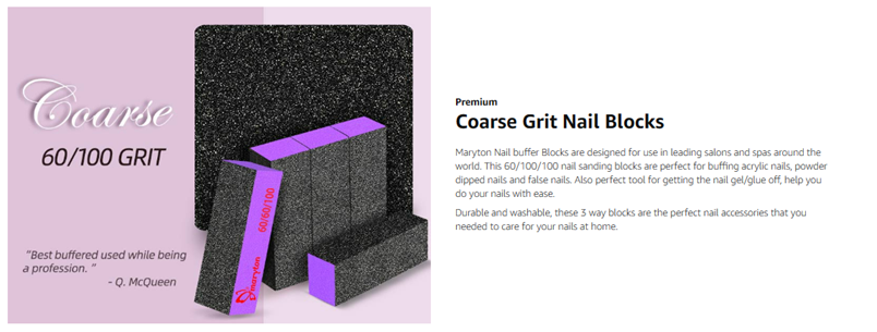 Distinguished by premium quality, Maryton nail buffer kits designed for use in leading salons and spas around the world. These #60/ 100 grit buffing blocks are the perfect nail tools for beginners or pros.