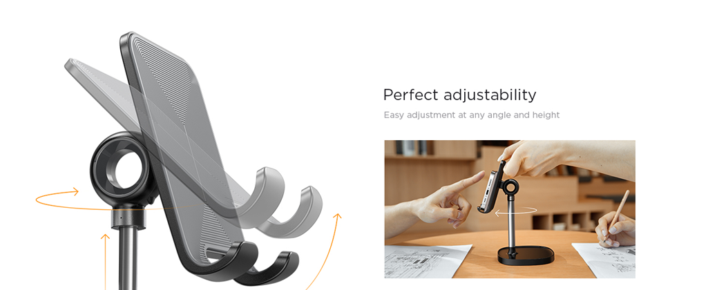 - USER-FRIENDLY DESIGN: [No bent & tangling & tip over worries] when using while charging. Due to bent cable, the low phone dock maybe fall over. LISEN stylish adjustable phone holder for desk has a reserved charging hole design, supports cable management, [No bent & tangling & tip over worries]. This phone pad will not cover the subtitle when you watch the video