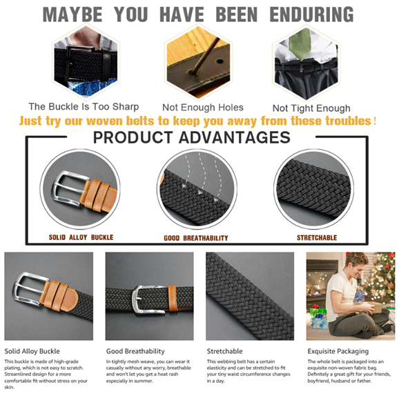 • Q: Will this elastic belt be too tight to be uncomfortable? A: Of course not. The tightly braided web belt is heavy and thick for strength and comfort. With this simple pin buckle and elasticated design, you can fix the firmly at any length. Essential accessory fits in well with any types of jeans, trouser and pants.