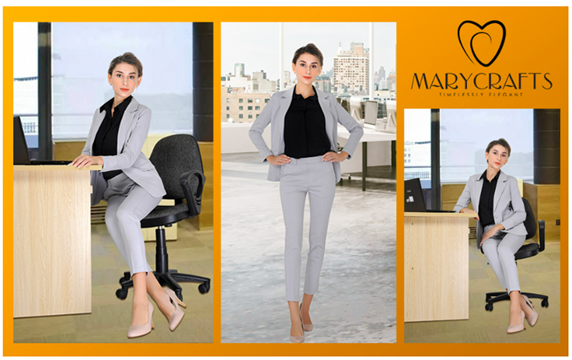 MOST COMFORTABLE PANT SUITS you'll ever wear to work: - Made of Durable, Ultra-comfy, 4-way stretch ponte fabric. You can look professional in office while performing hardest yoga postures in Lunch time.