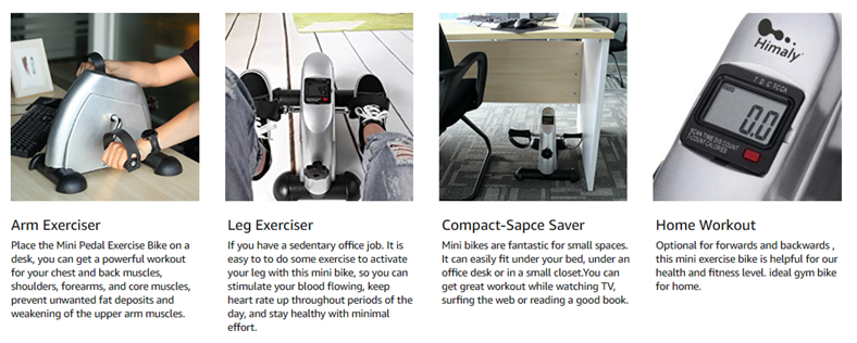 himaly Mini Exercise Bike Indoor Portable Home Pedal Exerciser