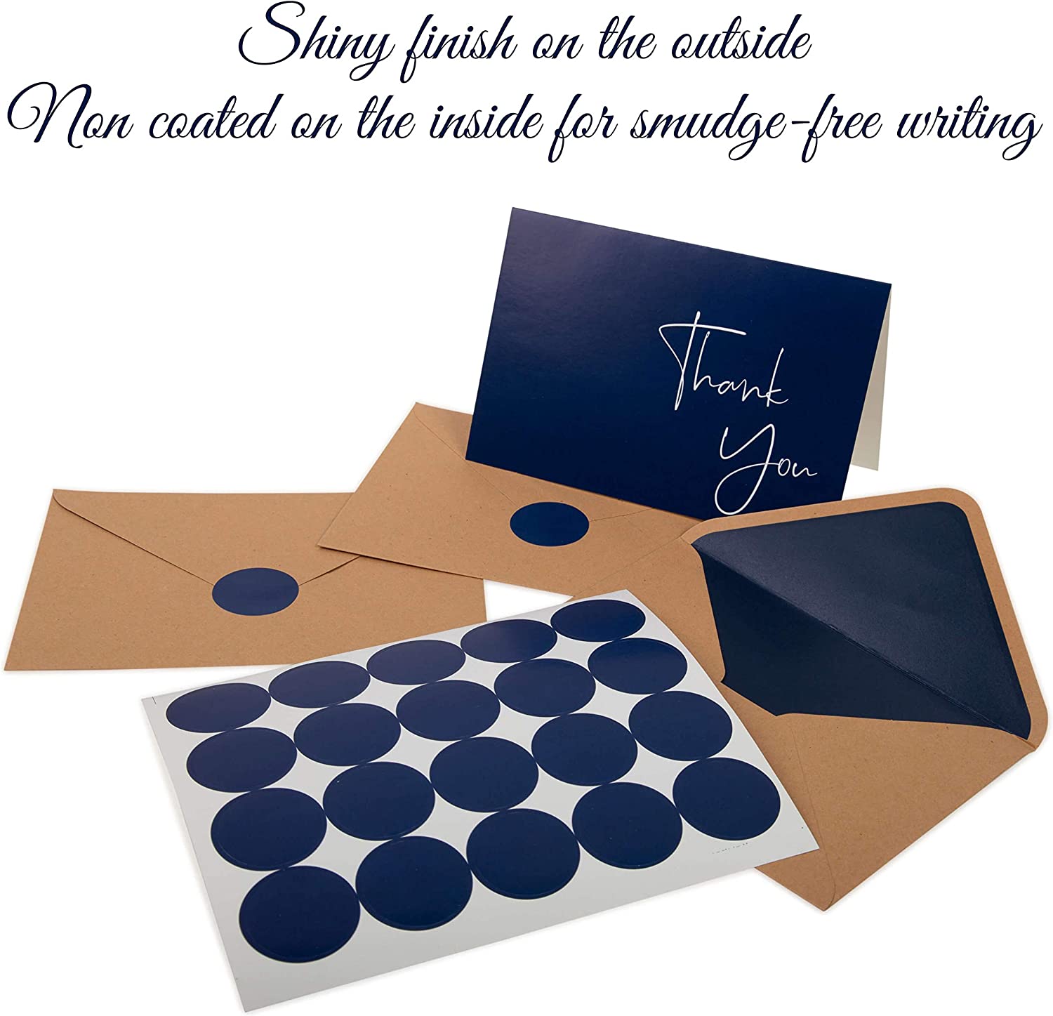- ✔️HASSLE-FREE ENVELOPES AND DOUBLE ADHESION: All envelopes are lined on the inside with a matching navy blue color. Our bridal shower thank you cards with envelopes are big enough to fit a standard sized photo. All envelopes are moisture sealed (lick-to-seal). For additional adhesion, we include peel-and-seal stickers with matching design to seal the envelopes!