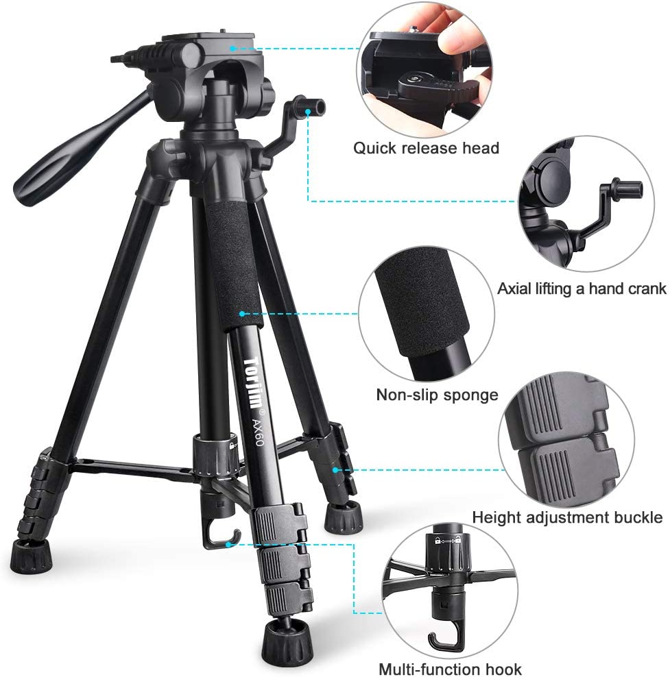 Torjim 60” Camera Tripod with Carry Bag, Lightweight Travel Aluminum Professional Tripod Stand (5kg/11lb Load) with Wireless Remote for DSLR SLR Cameras Compatible with Phone-Black