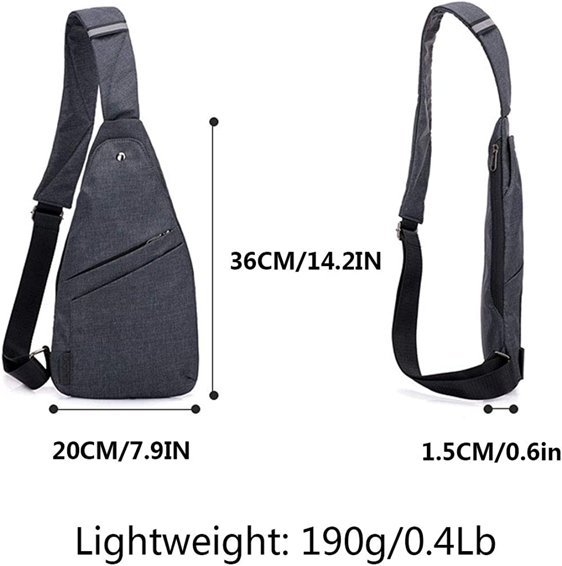 Sling Bag Size: 7.9"L x 14.2 "H x 0.6"W