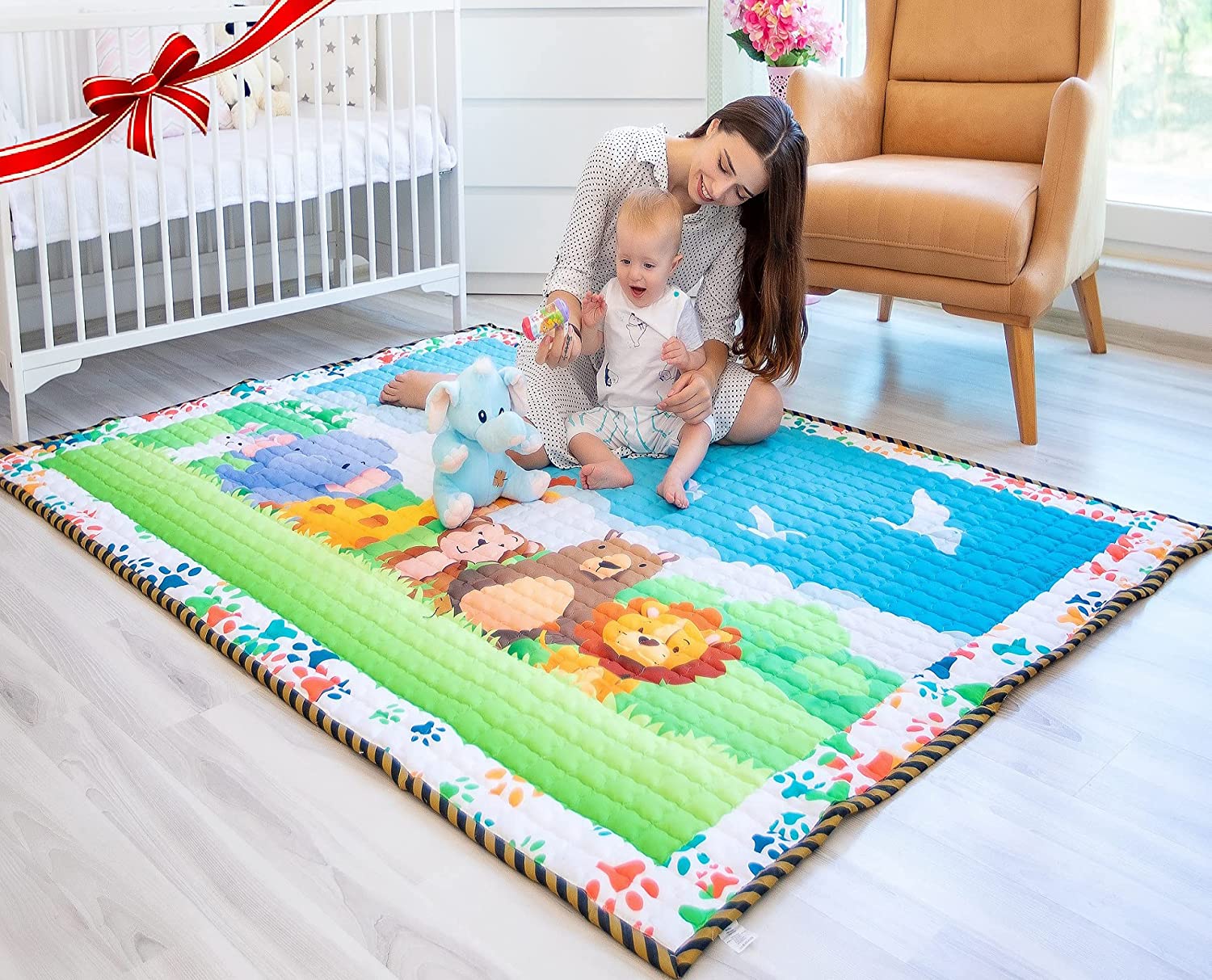 1" PADDED THICKNESS for babies and children to play, ideal for encouraging crawling, rolling, sitting up, and learning to walk. It ensures a soft landing for rolling, tumbling, and falls.