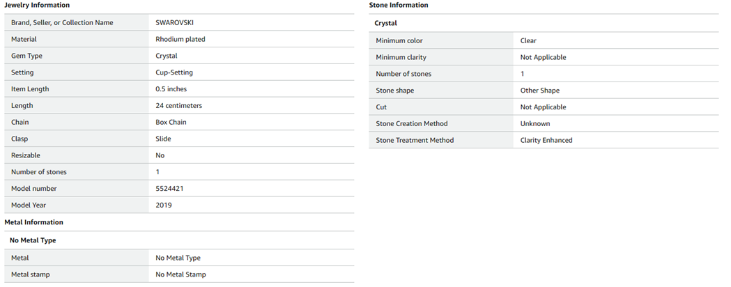 Designed to last: Swarovski jewelry will maintain its brilliance over time when simple care practices are observed; remove before contact with water, lotions or perfumes to extend your jewelry's life