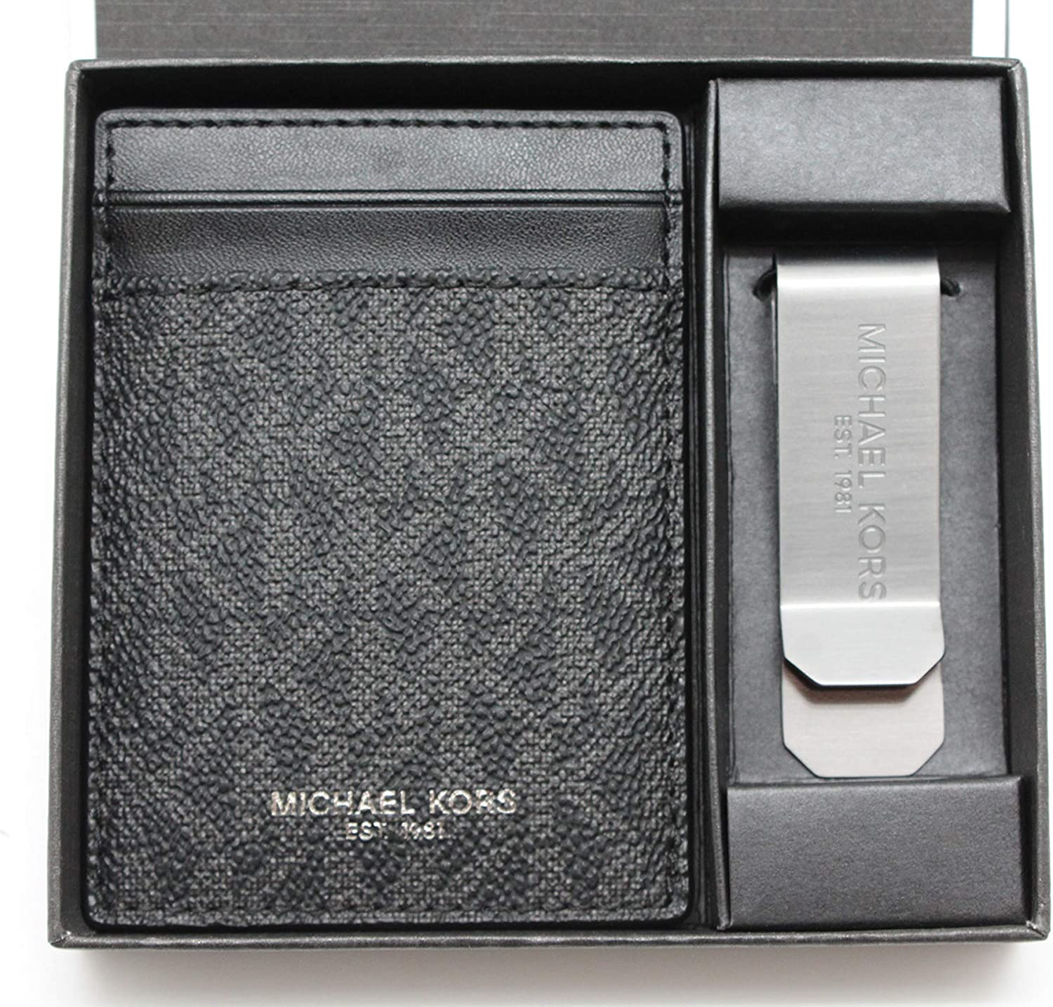 Size Approximate Measurements: 2.75 "(W) X 3.75" (H) Signature MK in Black, NO Center Slip Pocket. Exterior Details: 2 Front Card Slots, 2 Back Card Slots, and one detachable Money Clip Packaged in a Michael Kors Gift Box Imported, NO Center Slip Pocket.