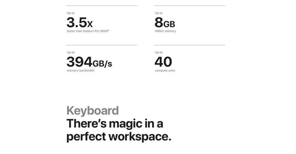 | Graphics and Video Support | AMD Radeon Pro 5300M with 4GB of GDDR6 memory and automatic graphics switching, Intel UHD Graphics 630 |