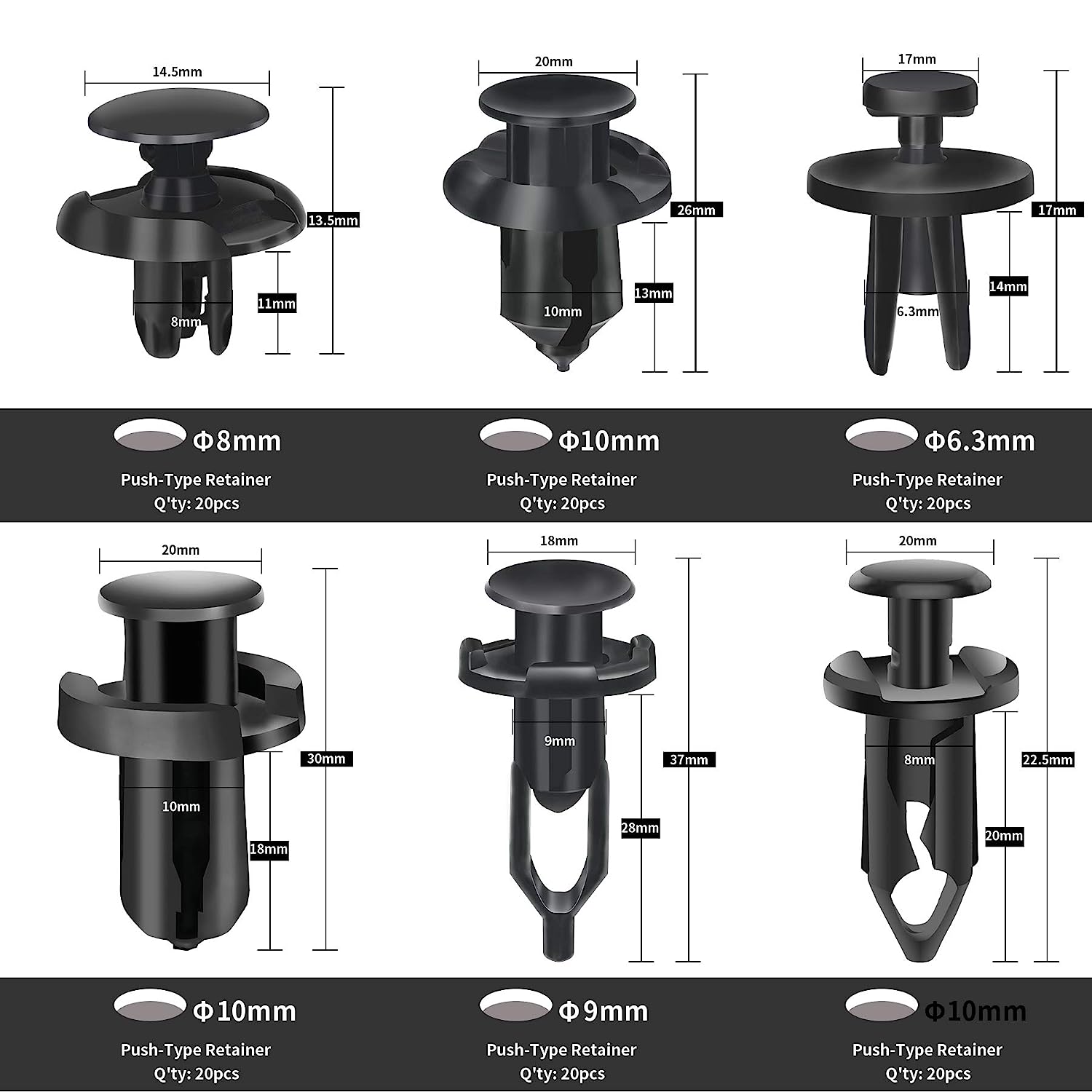 Car Screw Clips Includes 6 Most Popular Sizes from 6.3(1/4"),8(5/16"),9(23/64") to 10 (25/64").