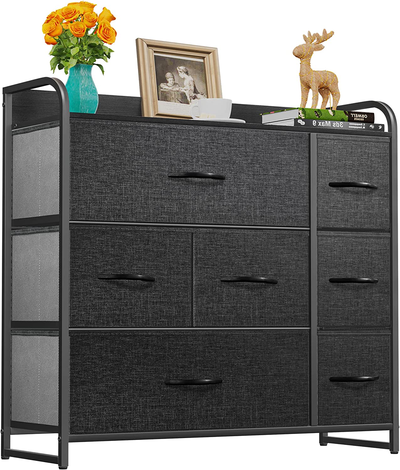 HIGH CAPACITY- 7 drawers of different sizes provide more storage choices, and sufficient space creates a neat and clean space for your bedroom or living room. Overall dimensions: 31.5" L x 11.4" W x 31.1" H.Drawer dimensions: 21" L x 11" W x 7.6" H / 11" L x 11" W x 7.6" H / 7.9" L x 11" W x 7.6" H.