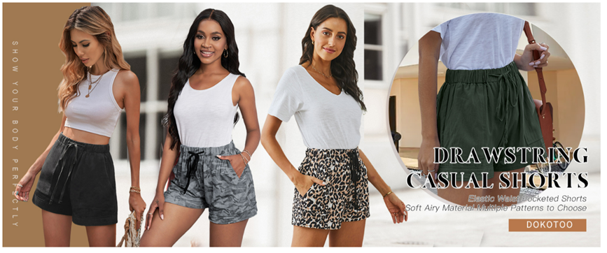 Dokotoo Womens Comfy Drawstring Casual Elastic Waist Pocketed Shorts