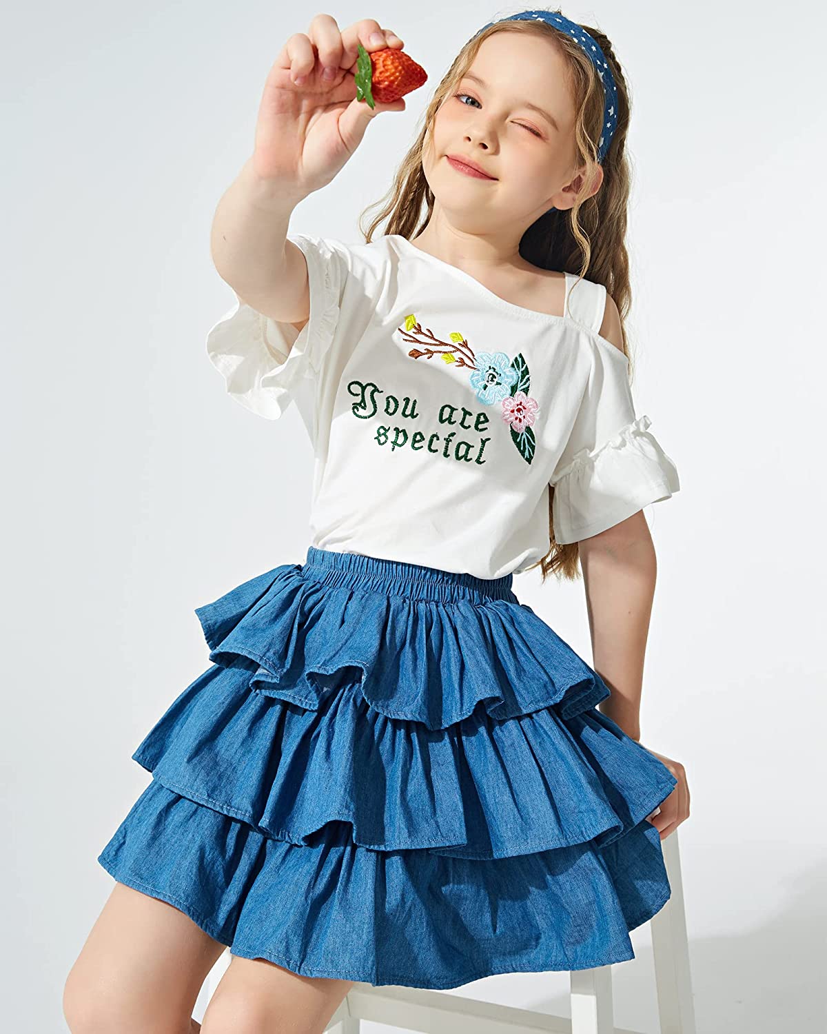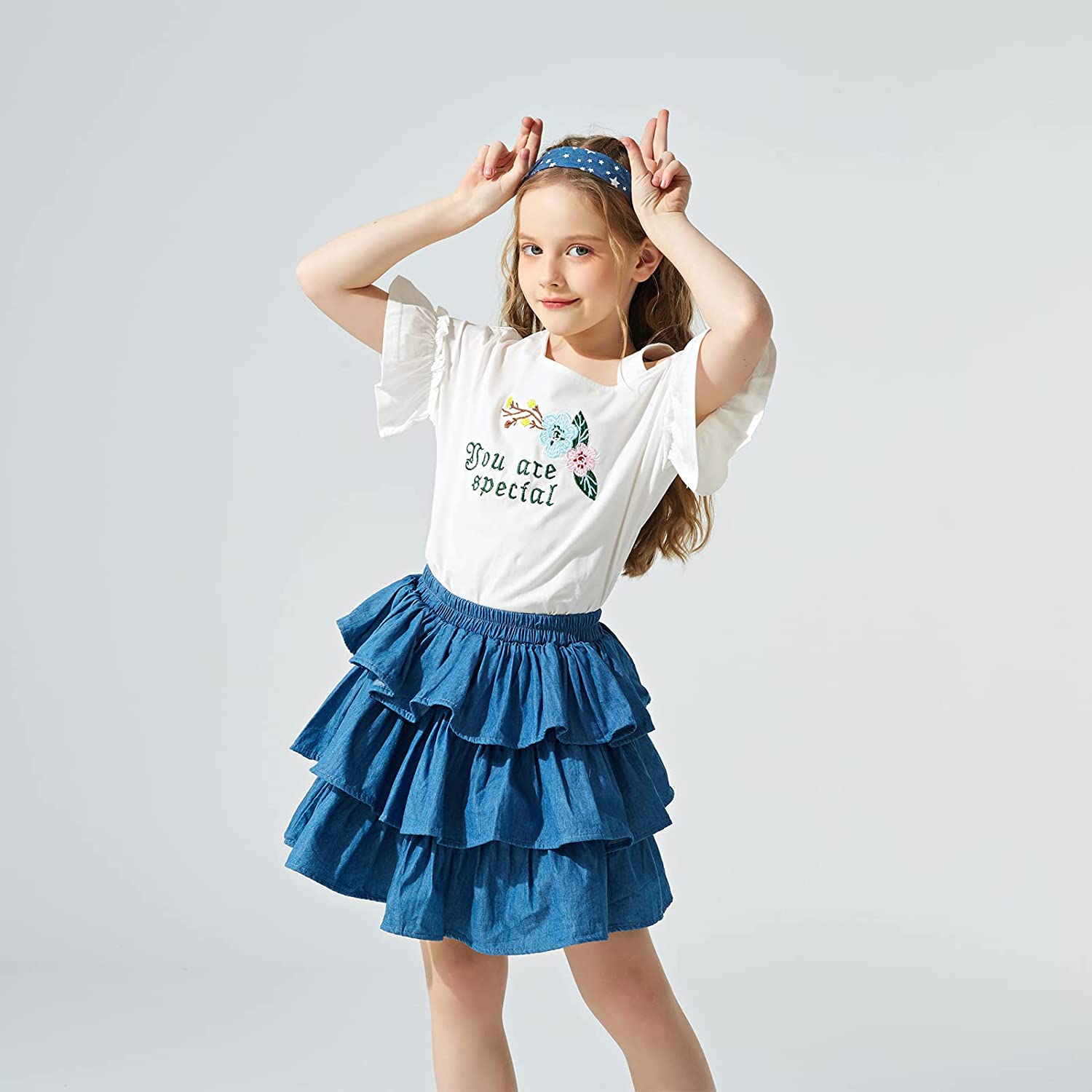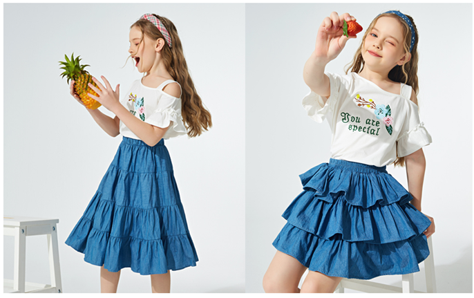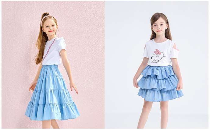 These fashion girls blue jean skirt for little big girl are featured with elastic waistband and that ensures a secure fit for a busy day of play.