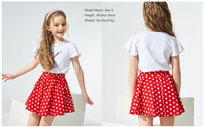 100% cotton. These skirts for girls are lightweight soft and durable.