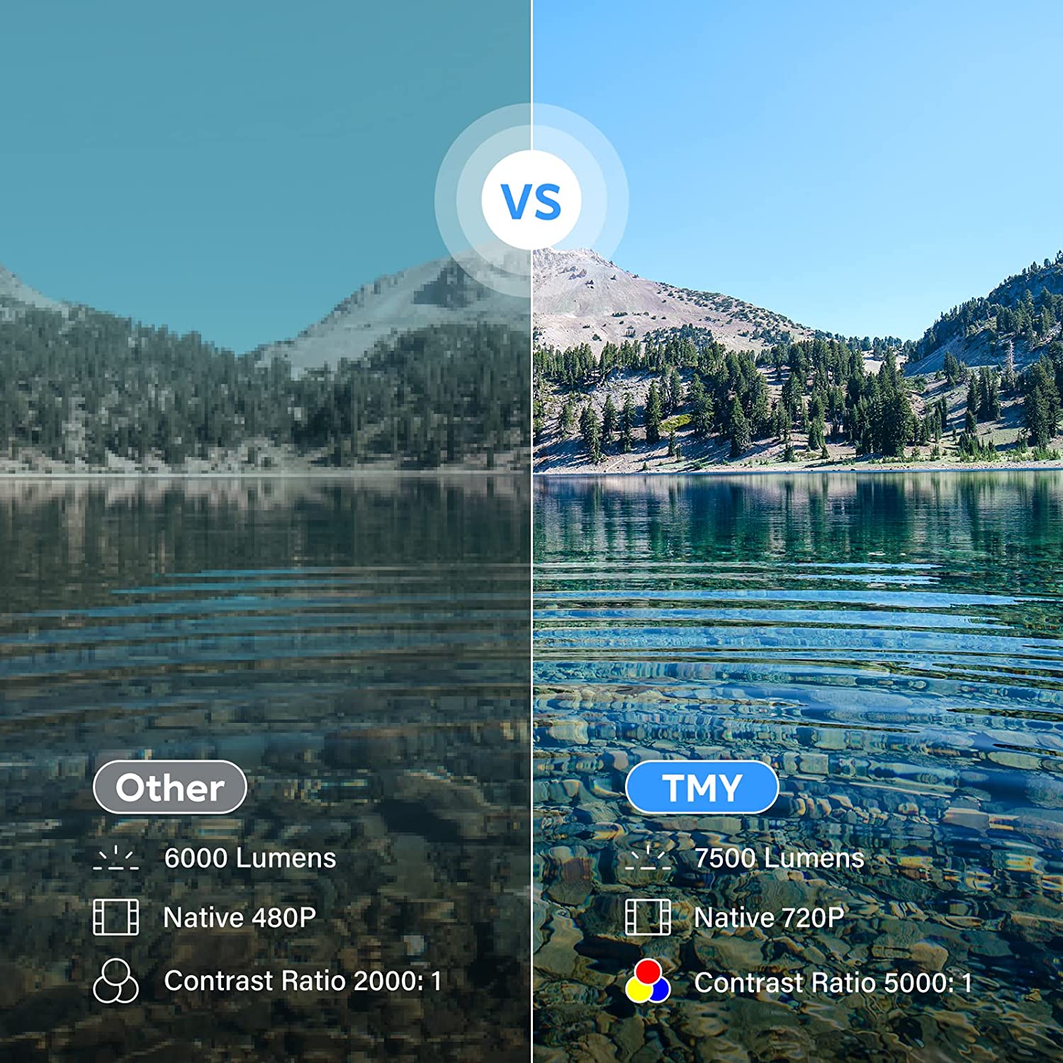 【?Upgraded 9500 Lumen HD Video Projector?】To better meet your needs, we have upgraded the V08 home projector with our latest 9500 Lumen LED light source. The V08 smart projector features a native 720P resolution (1280x720) with 1080P Full HD support. The latest 3LCD color calibrating and adjusting technology works to reproduce more intricate color details than other mini projectors, which presents our customers a dynamic and color vibrant 1080P HD projected image quality.