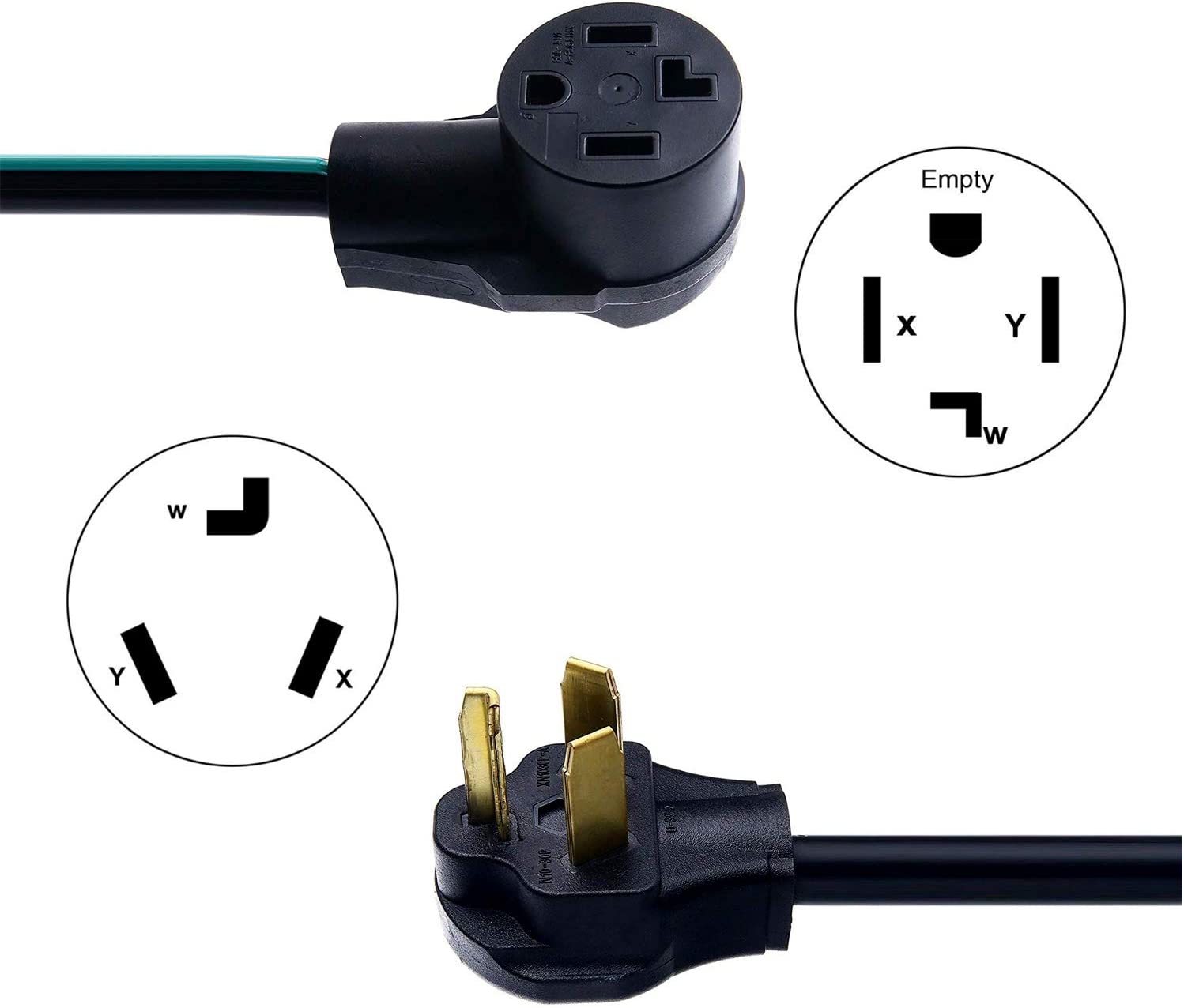 • 1.5FT 3 prong plug dryer adapter cord, UL Listed STW 10AWG/3, support max 30 AMP overload, 250 Volt, 7500 Watts.