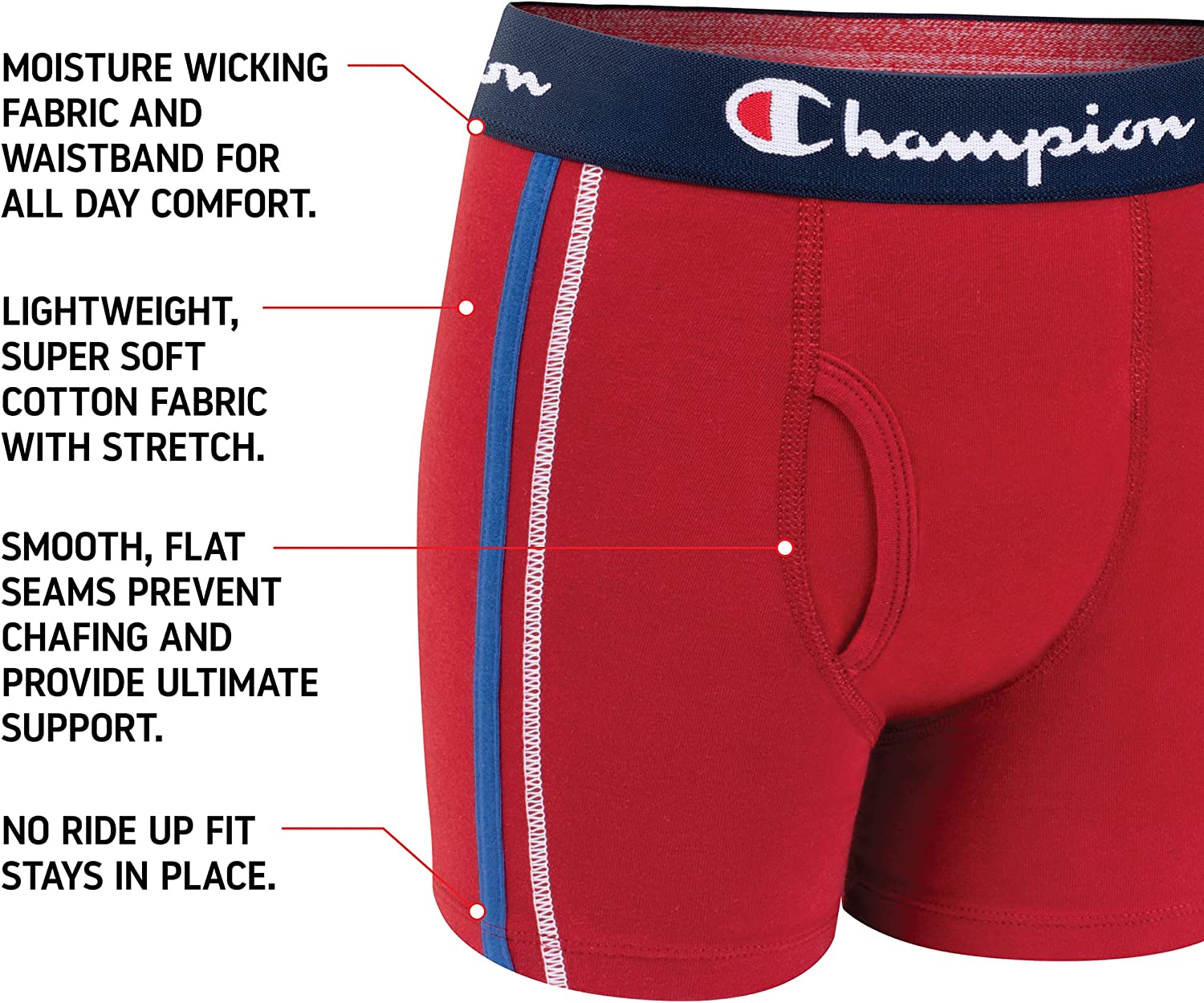 - LOGO WAISTBANDS – Underwear for boys features sporty piping and exposed contrasting logo waistbands for a touch of pure Champion style.