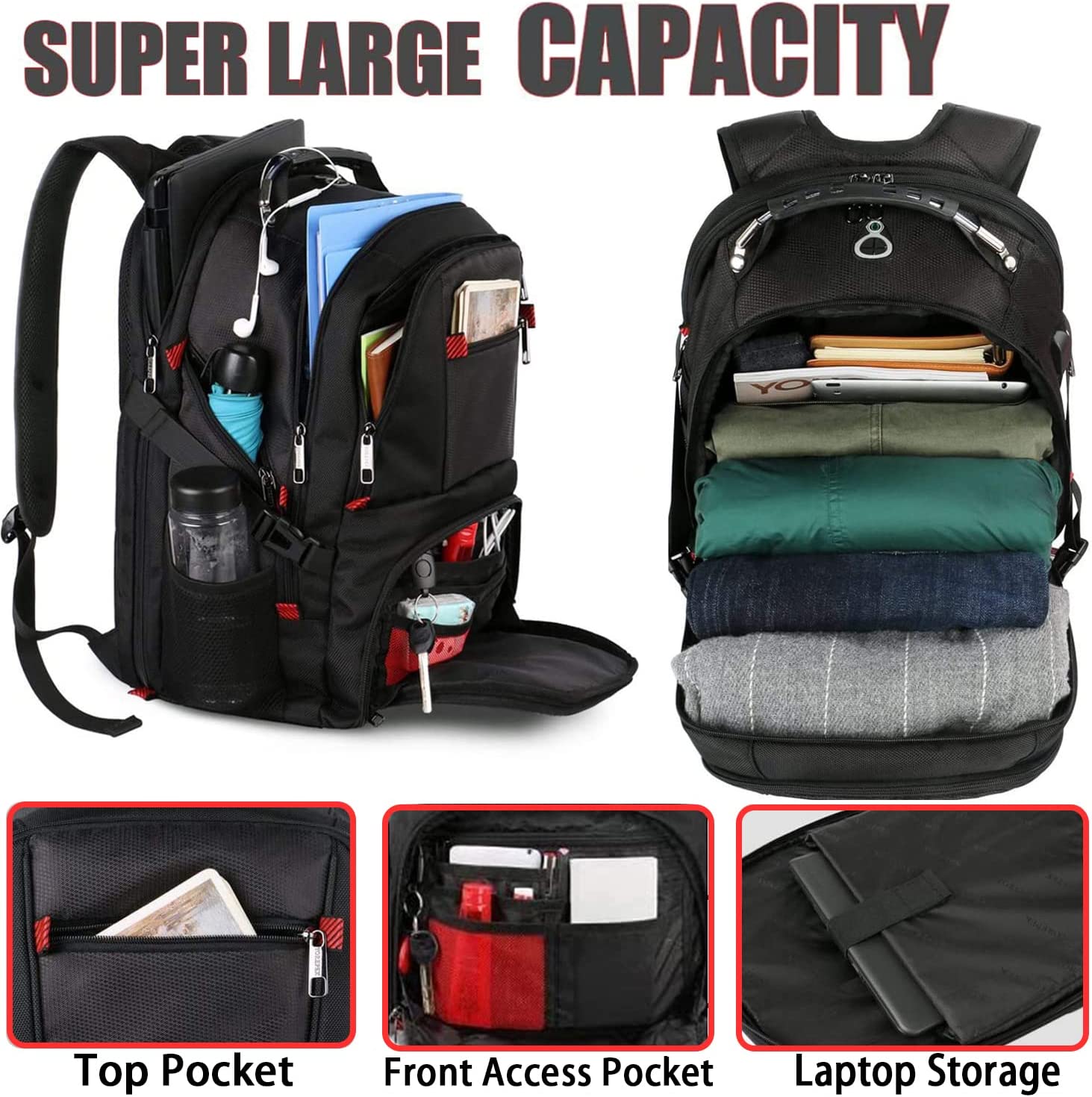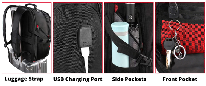 TSA Approve & Multipurpose: At checkpoints, the large travel backpack can be freely unfolded 90-180 degrees, allowing you to quickly pass through airport security and keep things tidy, exclusively designed for airplane travel. A luggage strap allows the traveling backpack to fit on the suitcase, great for international plane travel and day trips