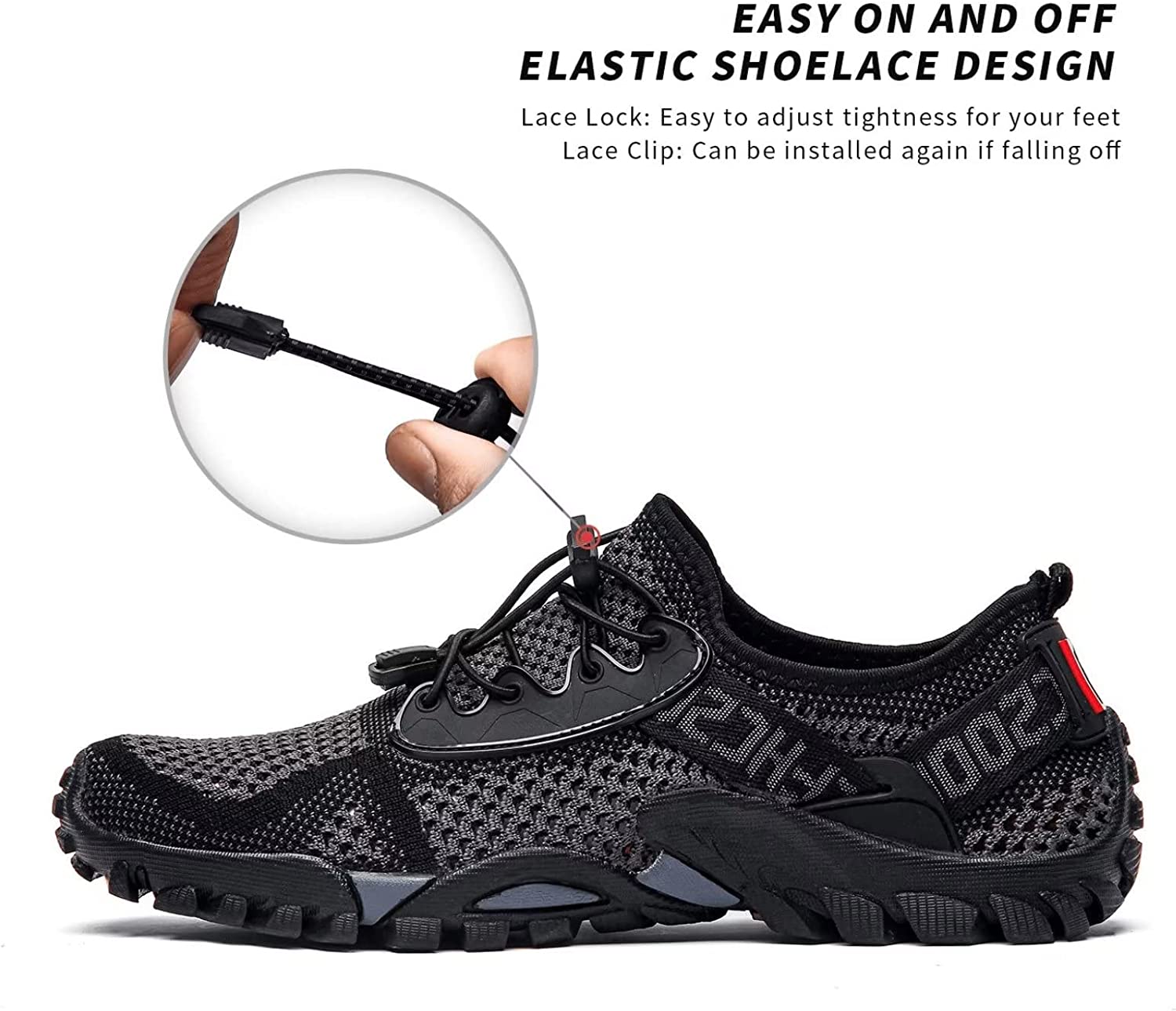 - EASY PUT ON AND TAKE OFF: Non Slip outsole promise reliable traction, unique elastic lace allow you adjust your shoes easily, without worrying about lace falling.