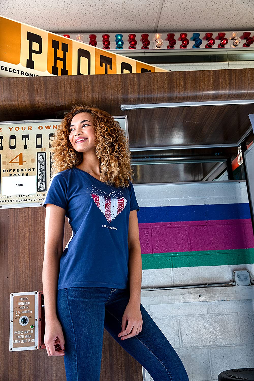 | Style | Patriotic Cotton Tee Short Sleeve Graphic V-neck T-shirt Heart Stars and Stripes |