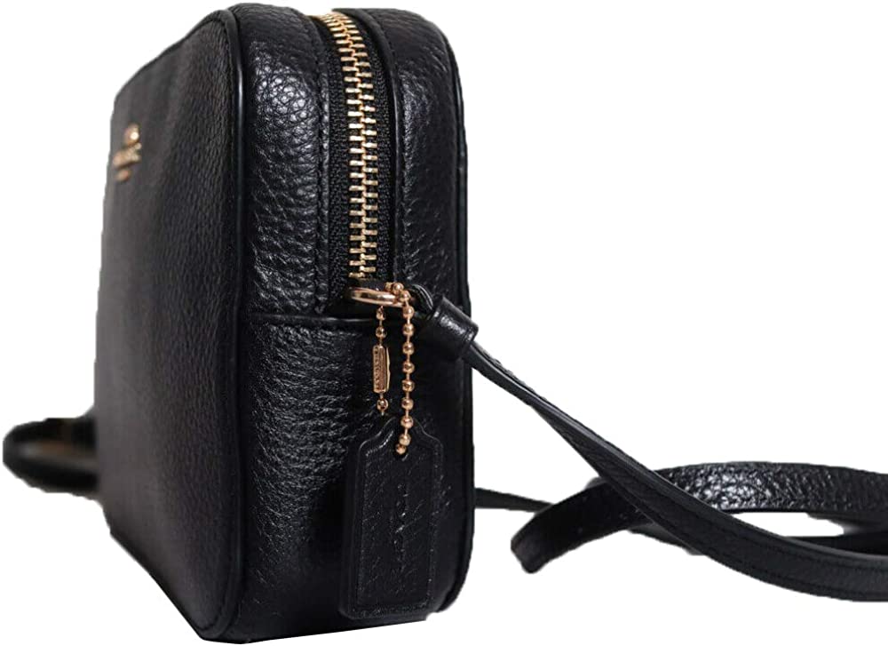 Coach crossbody shoulder bag in your choice of Signature canvas with leather trim or all solid pebble leather is the perfect size bag for daily use. Interior features one long slip pocket and 2 card pockets.
