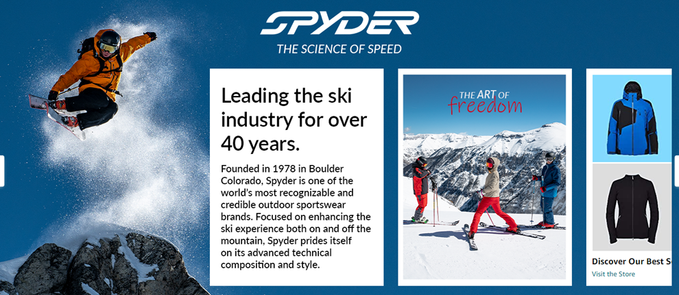 Spyder is one of the largest winter sports brands in the world, as well as an Official Supplier to the U.S. Ski Team. Spyder apparel integrates high-technology fabrication, sport-specific function, and fashion conscious designs. Based in Boulder, CO, the company sells high performance sportswear in the United States, Canada, and more than 50 countries worldwide.
