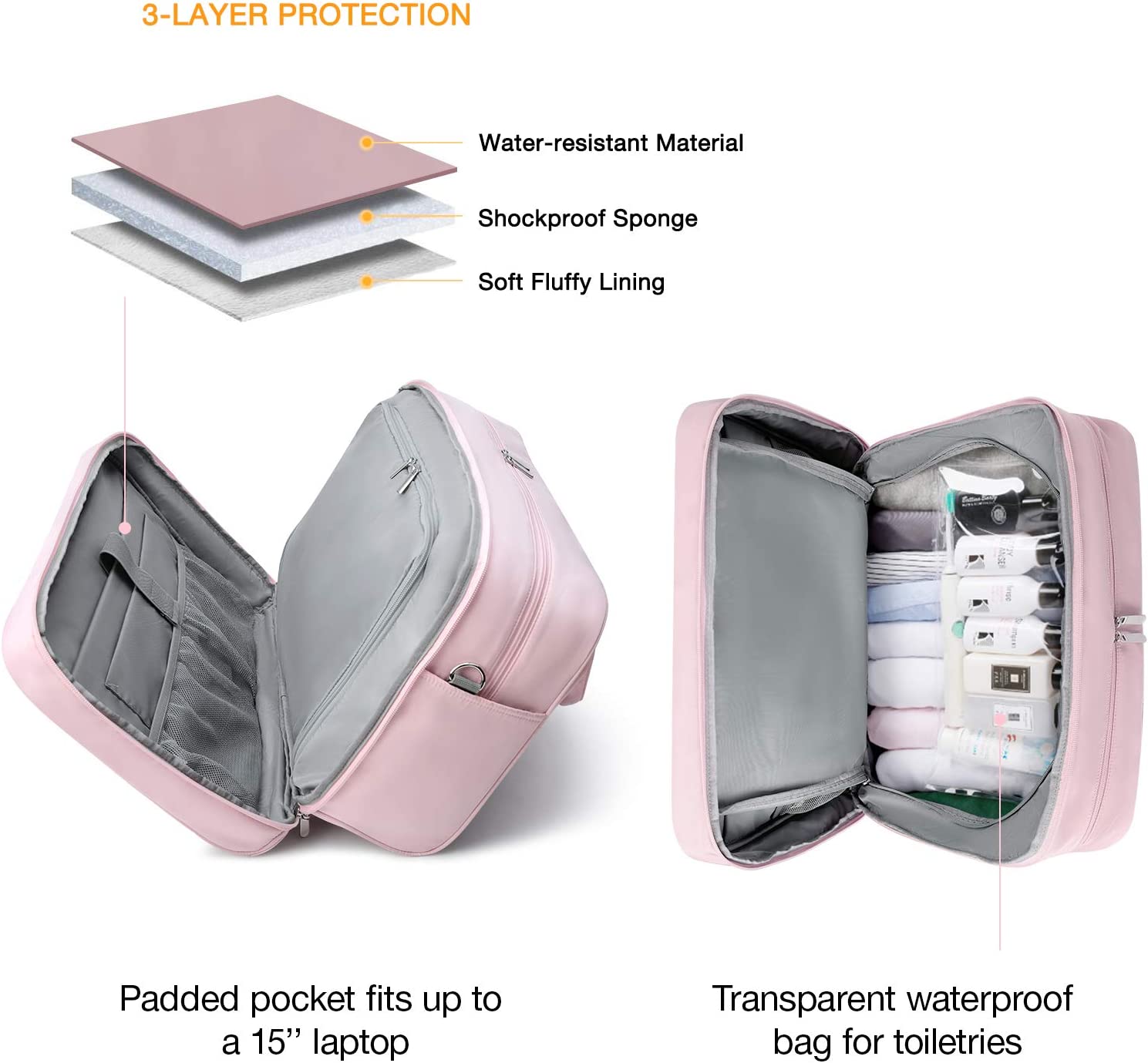 • Travel-friendly Design- opens down the middle like a suitcase for easy packing and TSA checkpoint; Back RFID blocking pocket to protect against unwanted scans.