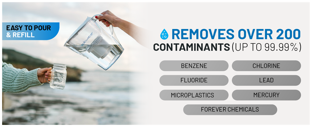 - Water purifier pitcher with filter: Each premium quality gravity water filter produces 150 gallons of fresh, contaminant-free drinking water (lasting 4 times longer than the leading water filter pitcher. Remove 99.99% of all tap water contaminants. 100% BPA-free, 100% Approved Food Grade Materials, 100% Recyclable, 100% Vegan. 0% Pretentious, Kids call it "Next Level" in Spanish they say, Filtros de Agua Para la Cocina,Filtros de Agua, Purificador de Agua
