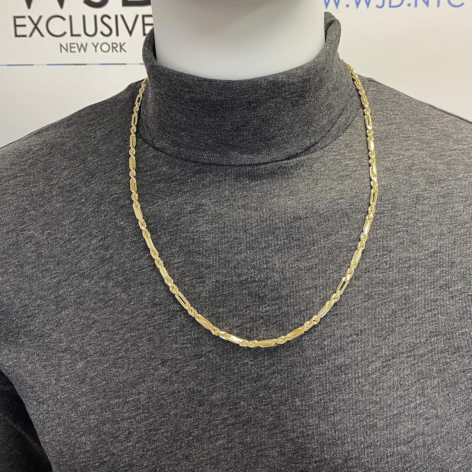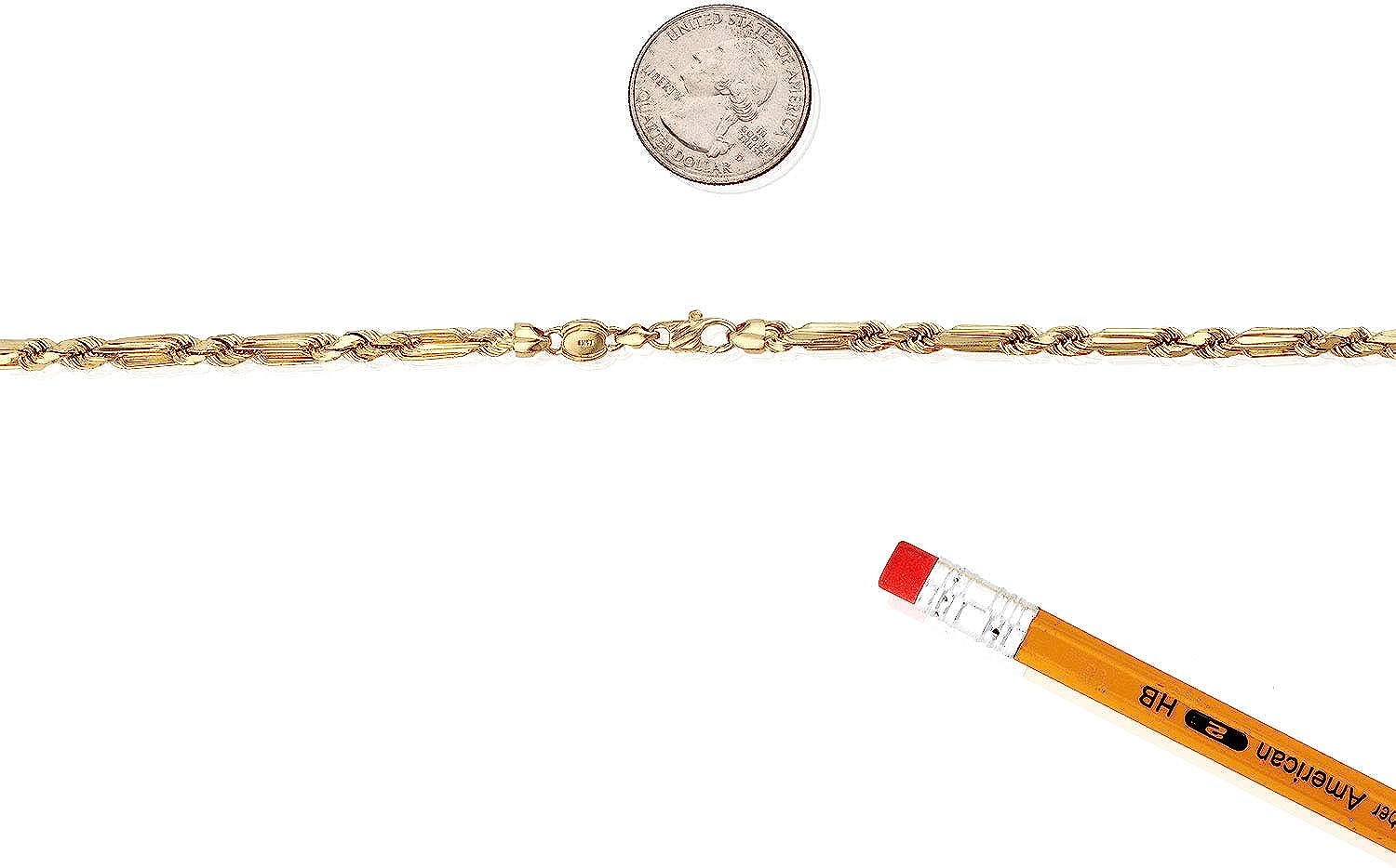 WJD Exclusives 14K Solid Yellow Gold 4mm Milano Figaro Rope Chain Necklace 20"-26"