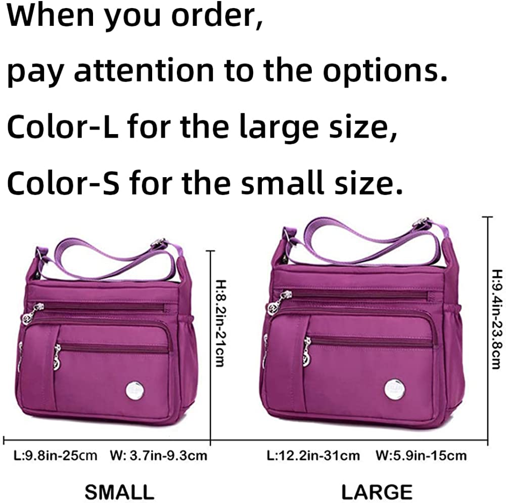 Exterior Dimensions: Small:9.8x 3.7x 8.2 inch (L x W x H).Large:12.2x 5.5 x 9.4 inch(L x W x H).Both sizes come with an adjustable strap.Two sizes of bags meet your different needs.