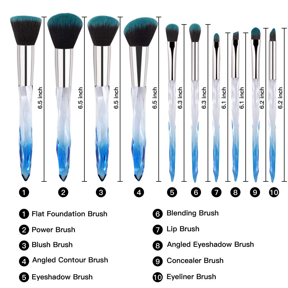 Professional Makeup Brush, Acrylic Diamond Handle Make Up Brushes Series for Full Face Foudation Blush Eyeshadow Concealers Powder Transparent Beauty Tools