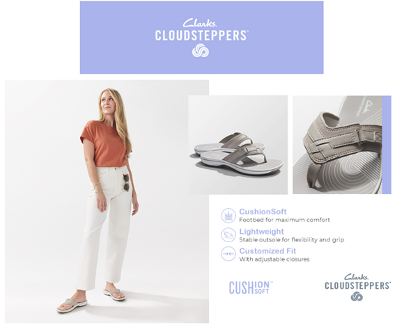 This lightweight Cloudsteppers flip flop benefits from a hook and loop closure that ensures a secure fit. An EVA midsole helps it feel weightless and an airy EVA footbed absorbs shock without adding weight.