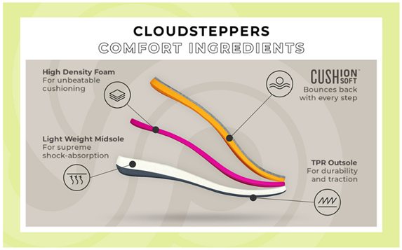 • Comfort Features: Ortholite footbed, EVA outsole, soft textile lining