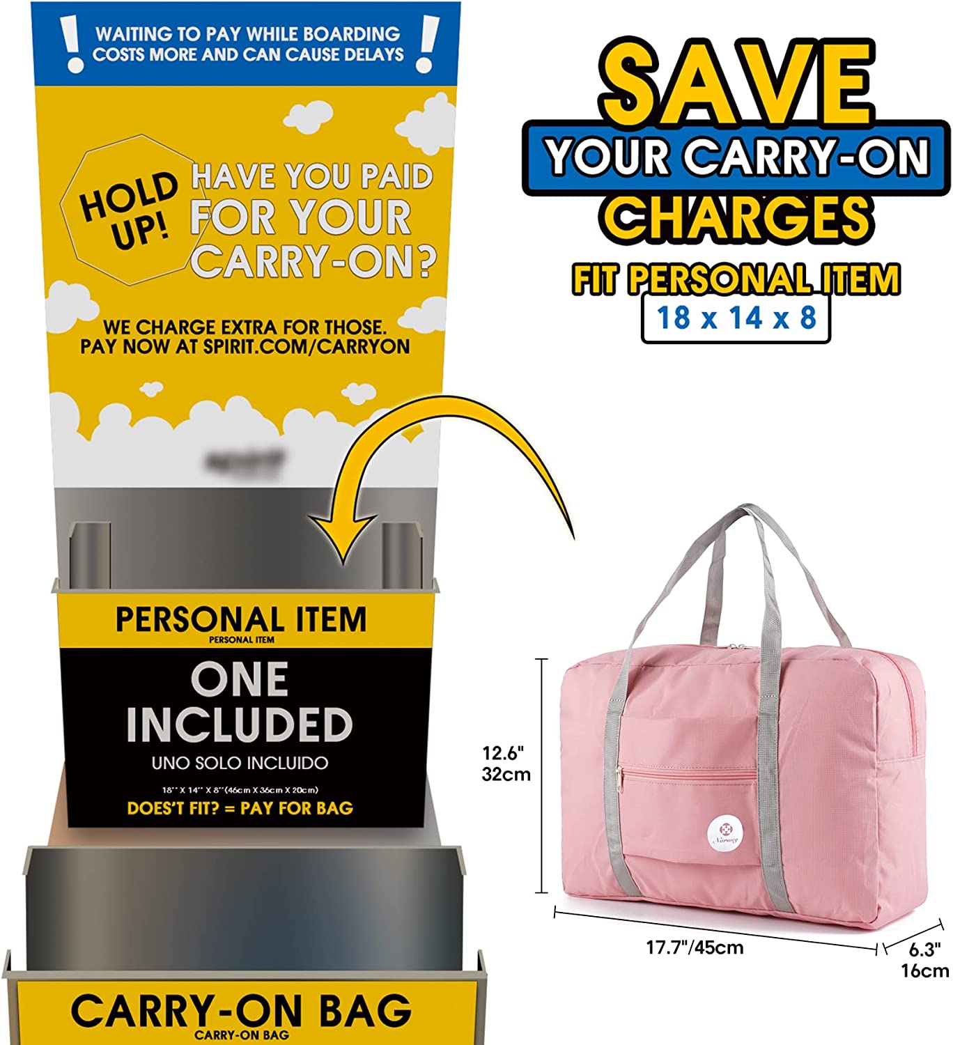 ✅ SAVE YOUR CARRY ON CHARGES -【Model:T1112】Bag size 18 x 13 x 6.3 inch fits personal item size 18 x 14 x 8 inch of Spirit Airlines & Frontier Airlines perfectly, which can be placed under seat and no need to pay carry-on.