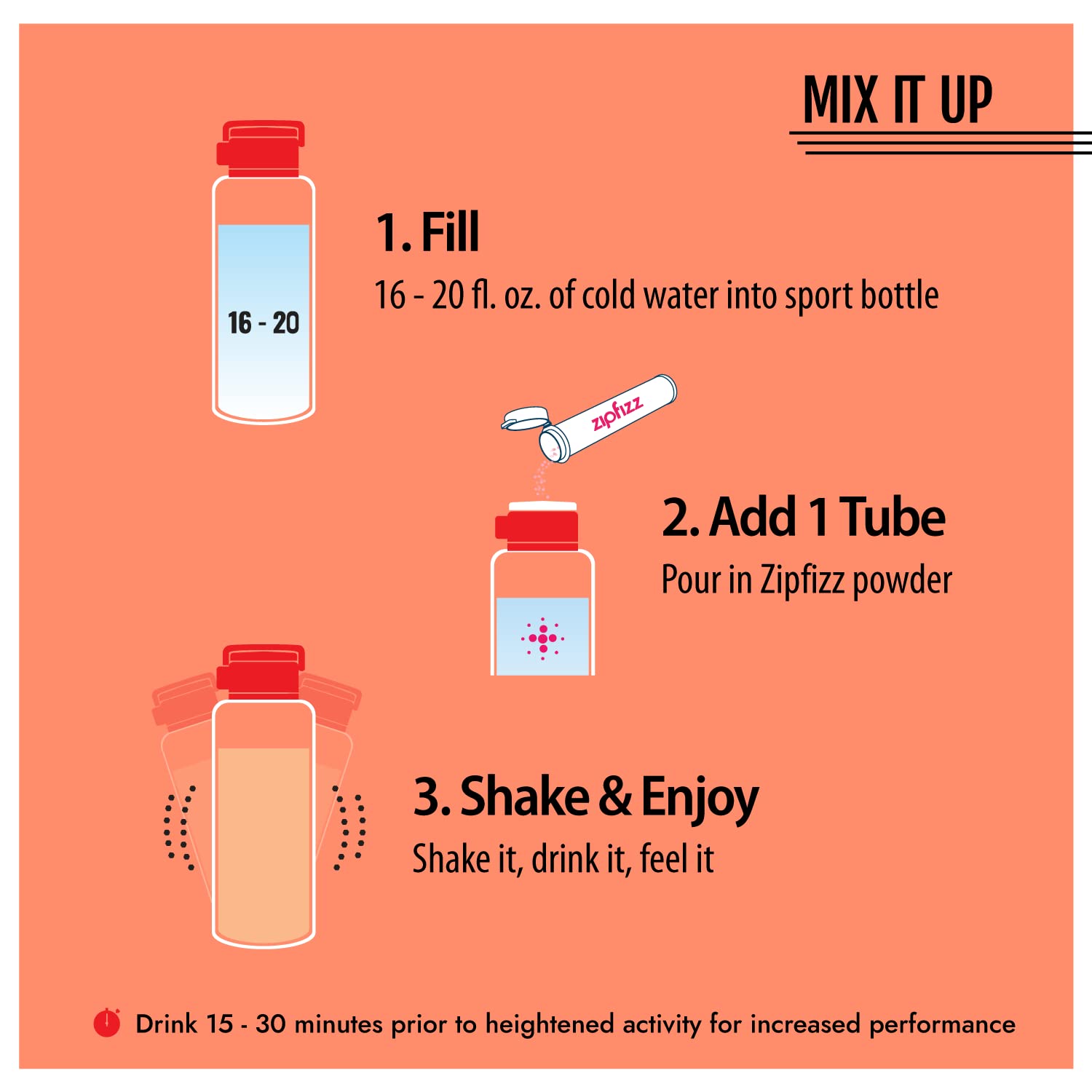 PEACH MANGO : Our Mango Peach energy drink mix is bursting with bright summer flavor without any artificial colors or flavors. Simply mix one tube into 16-20 oz of water or any non-carbonated beverage, shake, and enjoy.