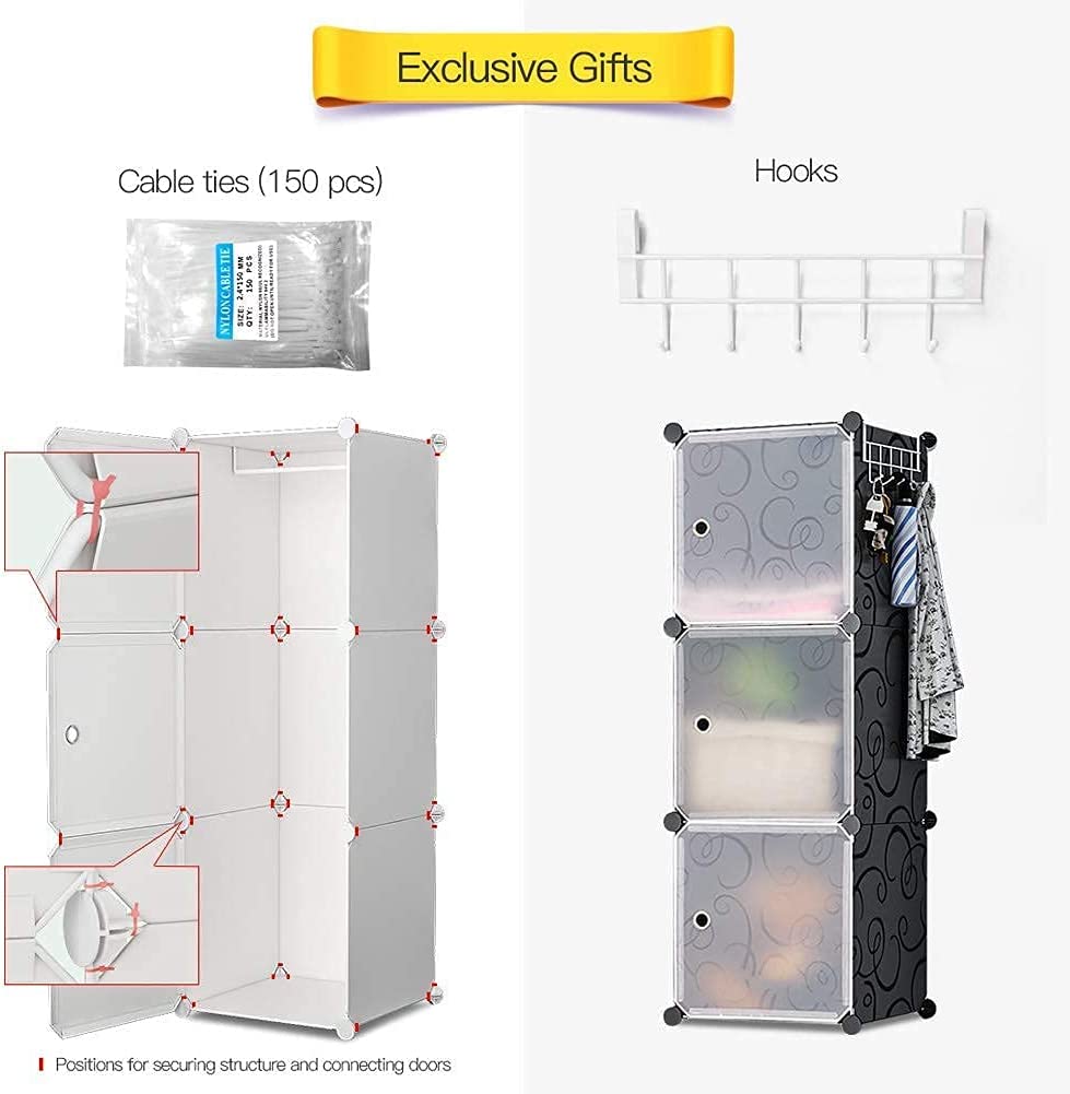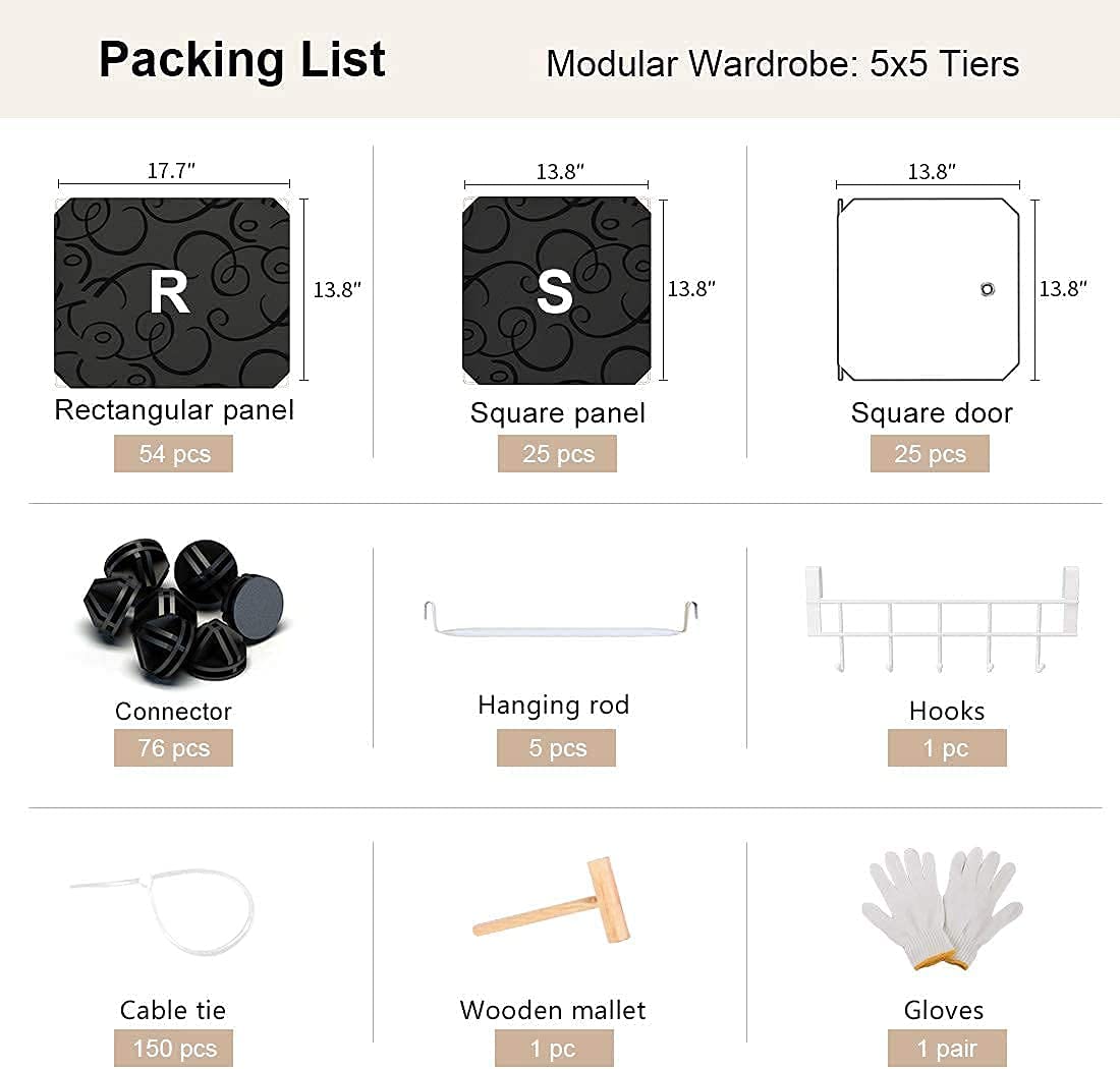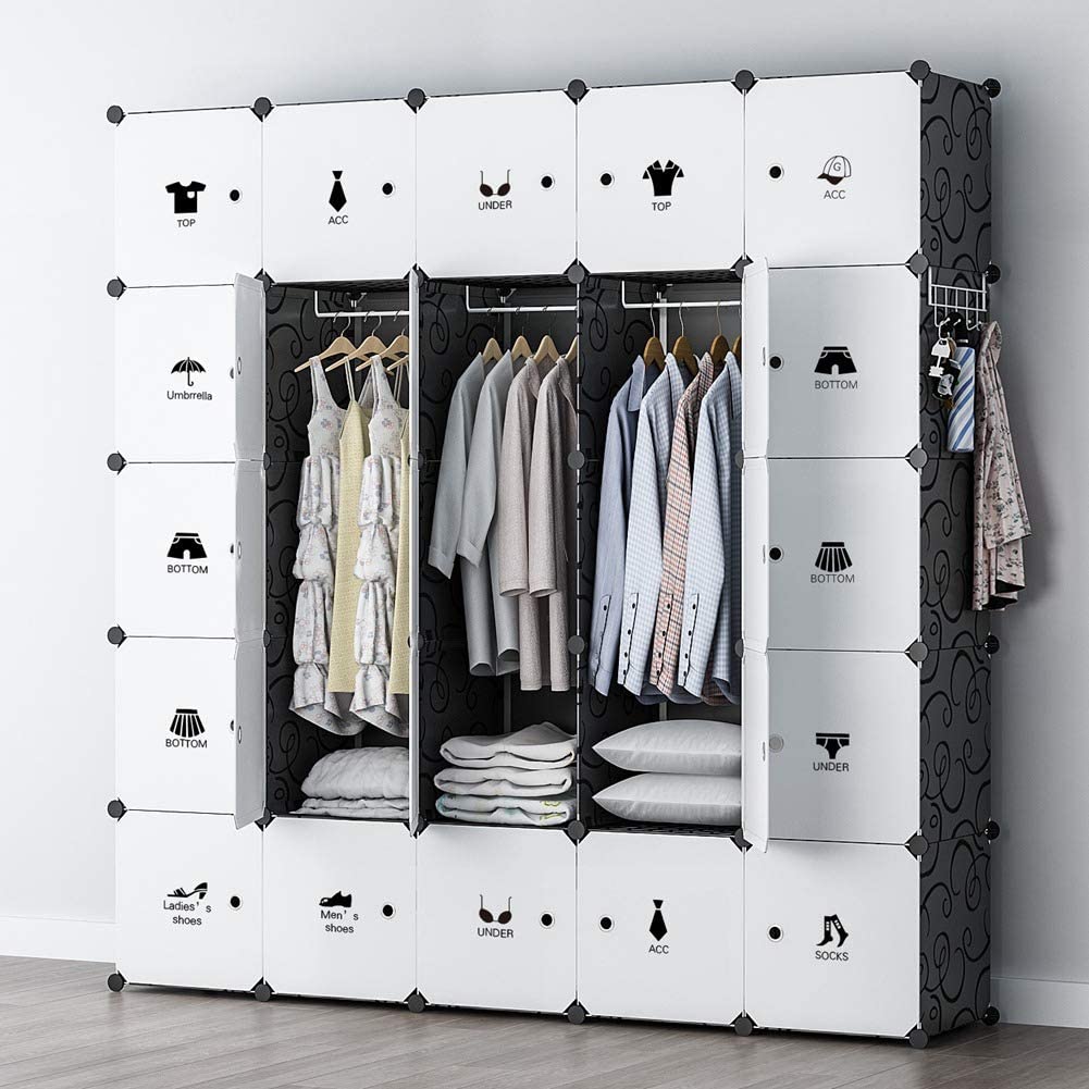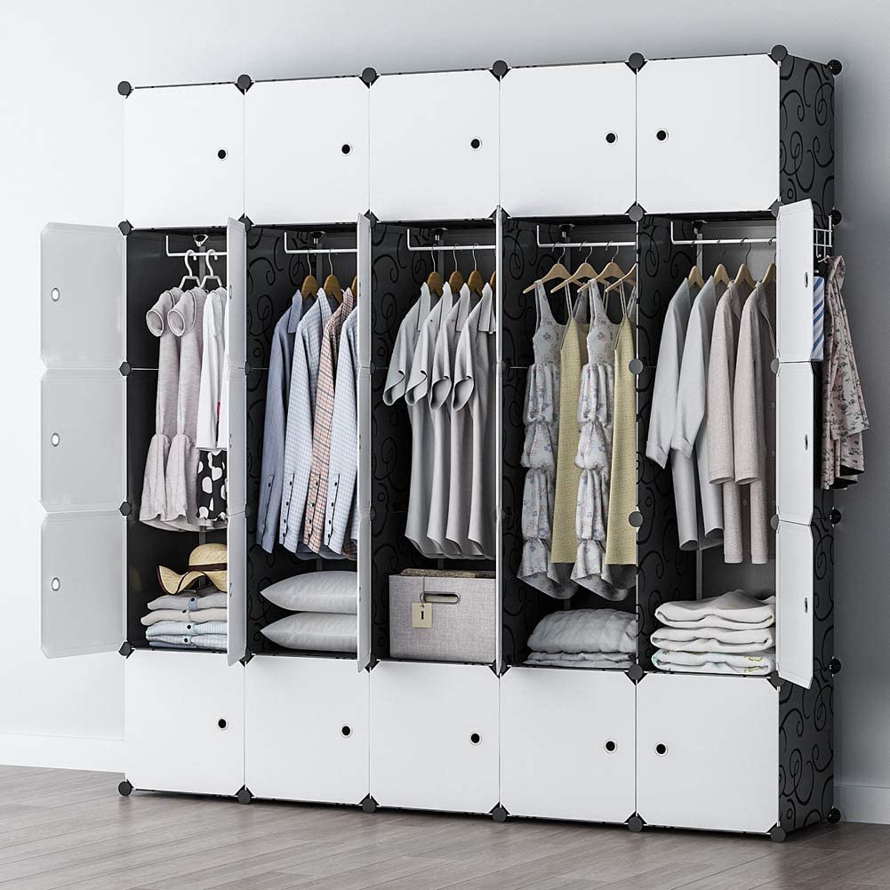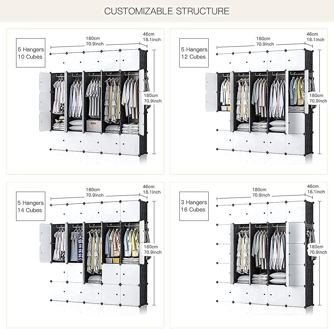 YOZO Cube Storage Organzier Portable Wardrobe Closet Bedroom Dresser (71x18x71 inches) Portable Closet Cube Shelf Armoire Pantry Cabinet, 25 Doors, Black