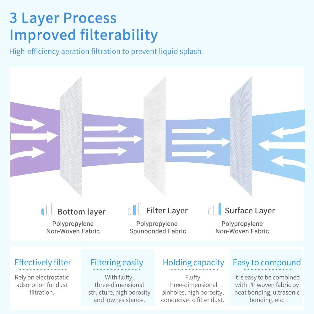 【General use】Size for adult: 6.9 x 3.7 inch / 17.5 x 9.5 cm. Safe and reliable 3-ply structure, the middle filter layer is polypropylene spunbonded fabric (melt-blown).