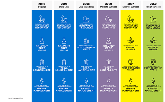 • SUSTAINABILITY: Solvent-free paint tape made from 45% renewable resources with a core made from 70% post-consumer waste