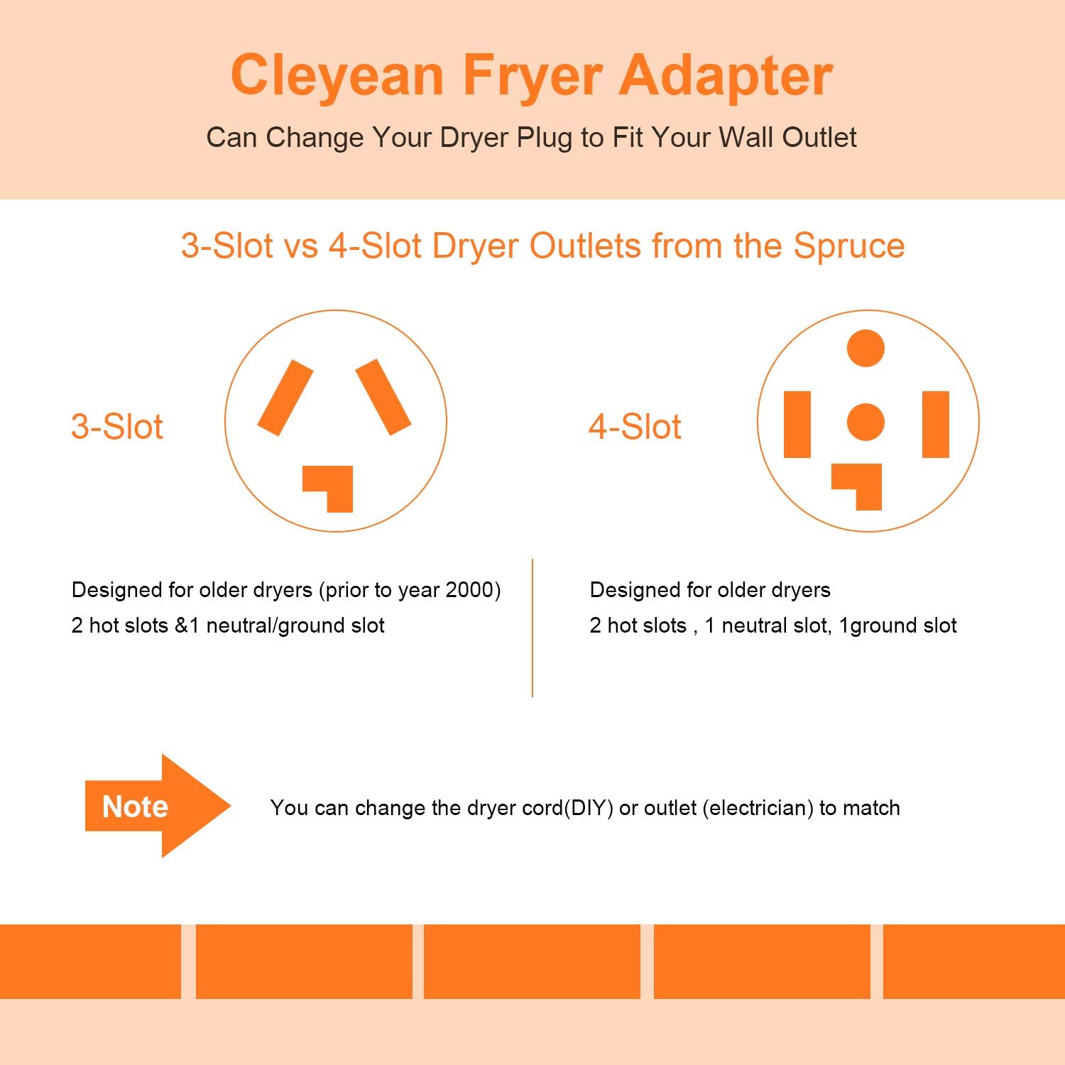 - Dryer Adapter Cord: Cleyean dryer adapter can connects the 3-prong plug of your dryer to the 4-slot outlet in your house. Nema 14-30 plug connect to the wall outlet. Nema 10-30 socket connect to your dryer plug.