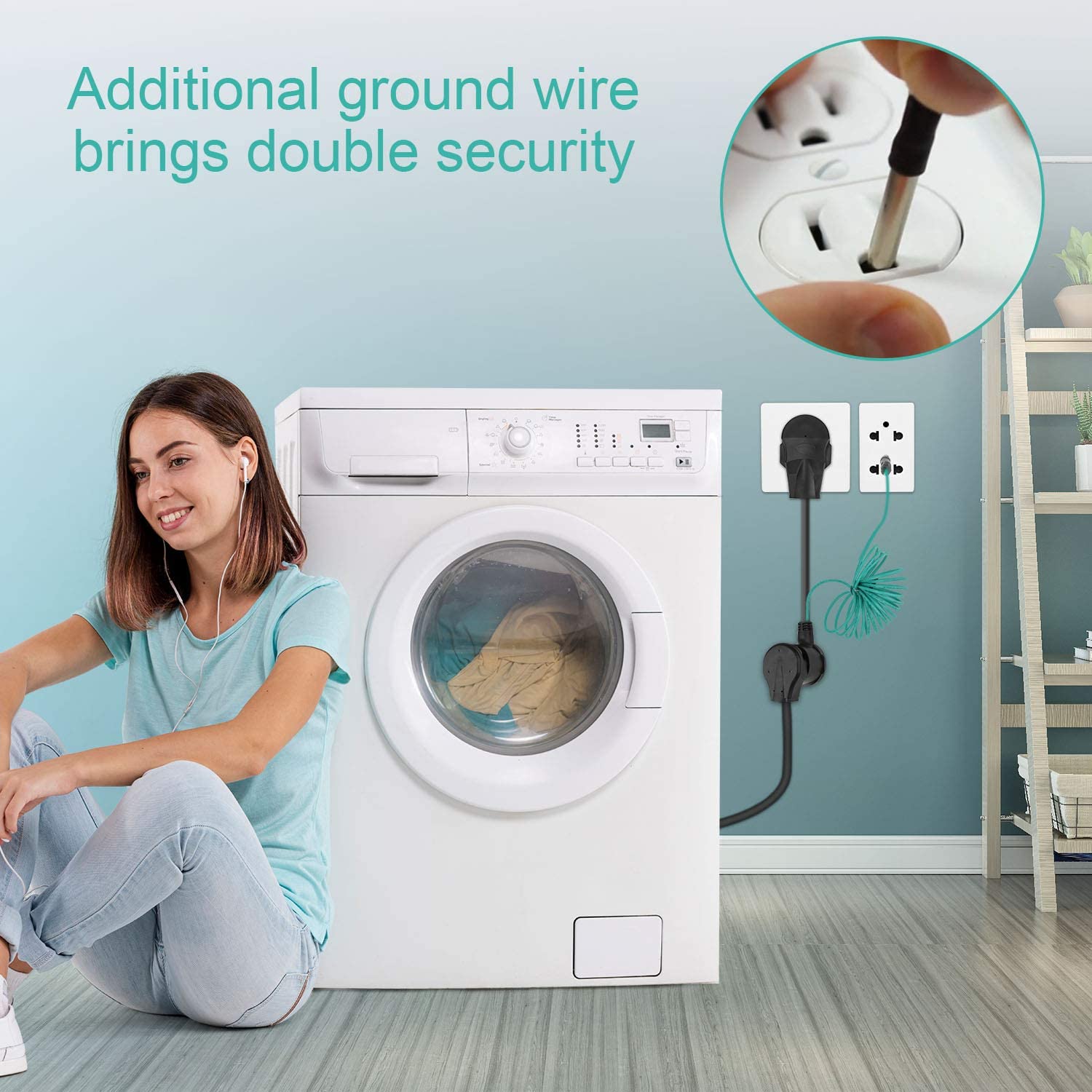 - Safty Ground Wire: The additional GREEN ground wire is very important, Please connect the ROUND TERMINAL of the green wire to the Grounding hole of 15AMP or 20AMP 125V household wall socket/outlet/power strip/extension cord etc. because the 10-30R socket does not has grounding wire.