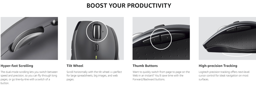 - Extra Productivity: This wireless mouse features 5 customizable buttons; including forward and back thumb buttons; create shortcuts; jump to full-screen; open applications; and more