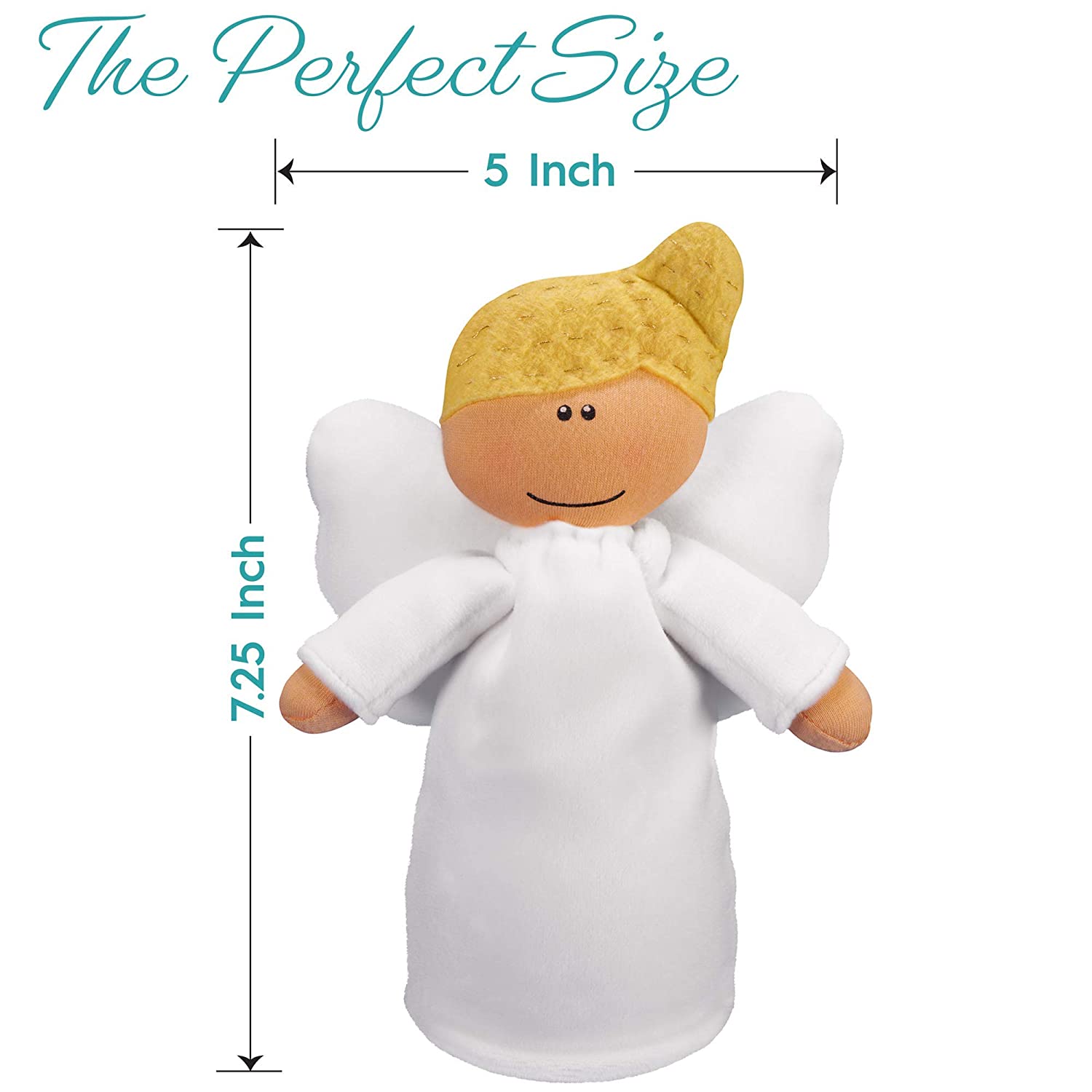 • The Angel Plush is surface-washable and can be monogrammed by the buyer. Angel plush dolls come in boy or girl and can be customized with different hair and skin colors. Each plush doll has moveable arms and shiny golden threads throughout the hair.