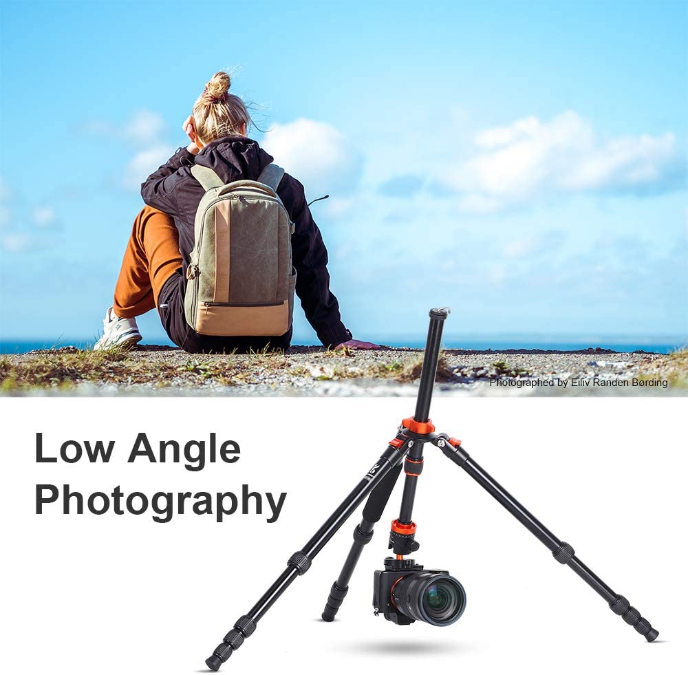 【Multi-Angle Shooting】Spring self-locking foot tube angle adjustment button, just press and release to quickly adjust the opening and closing angle of the three legs; can help you achieve lowest angle shooting, macro shooting, and other special photography through inverted central axis.