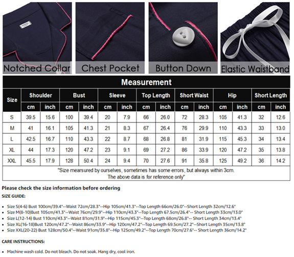 • ❤【 GARMENT CARE】Women's Sleep Set Shorts Machine washed or Hand-wash with cold water.Do not bleach. Please refer to the Size Chart on the detail page before ordering.If there is any questions, please to contact us.