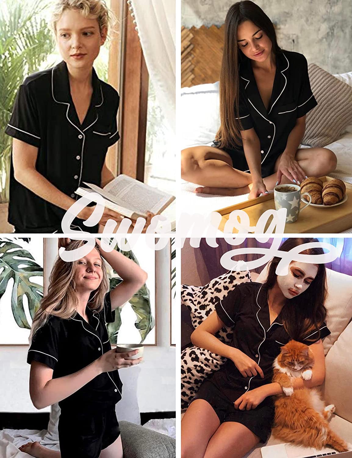• ❤【PJ SHORTS WITH DRAWSTRING】SWOMOG bottom pj shorts is featured with the drawstring elastic waist to make relaxing as comfortable as possible. Easy to adjust the tightness of pj shorts. Comfty and lightweight pajamas set sleepwear for women.