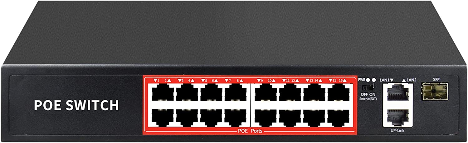 【AI 250 meters Extend function】Turn on the extension switch,it enters the AI mode,POE port will judge whether it enters the ultra-long distance (820ft/10Mbps) mode according to the actual situation).Extend function extending max power and data transmission distance from 100 meters(330ft) to 250 meters(820ft).which is easy to expand network via ethernet cable to somewhere without power supply but need fix device such as IP Cameras.