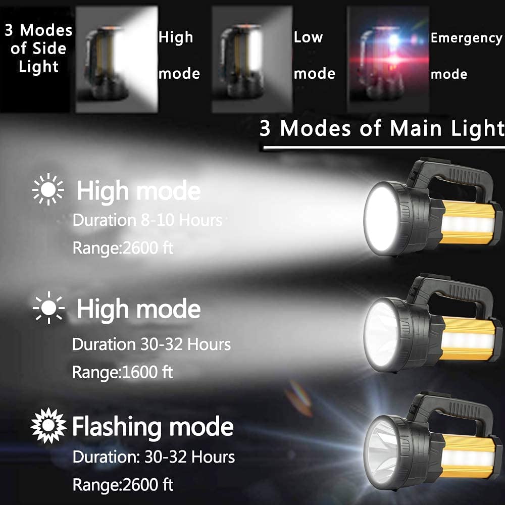 A HIGH-POWERFUL LIGHT WHERE YOU NEED IT MOST. Ultra-bright 40 Watt LED light with 2 brightness modes: High (6,000 lumens), Low (3000 lumens). Ultra-long illumination range up to 800 meters Makes it a long distance spotlight flashlight.Besides,it’s a powerful camping floodlight and warning light.