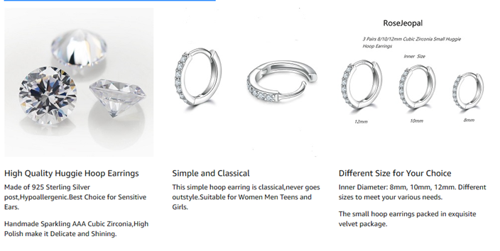 - 【PACKAGE INCLUDES】Order includes 3 Pairs 8/10/12mm(0.31/0.4/0.48in) Small Cubic Zirconia Hoop Earrings.The Small Hoop Earring is Cuff Design,Easy to Open and Close.Note:The 925 Sterling Silver Needle is very soft,Please do not Use too much Force When Opening and You can Straighten it Yourself if it bent.