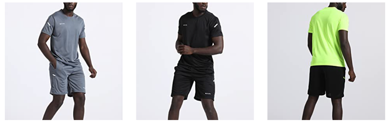 BUYJYA Men's Workout Clothes Athletic Shorts Shirt Set 3 Pack for Basketball Football Exercise Training Running Gym